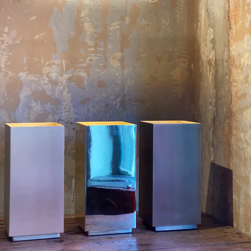 Effortless class resulting from geometric rigor distinguishes this artisan floor lamp. Part of the limited-edition Light Gallery Luxury Collection, it sports a parallelepiped-shaped brass body raised on a plinth base and offered in a gleaming glossy finish. Please inquire with the Concierge about the availability of more finishes and customized versions. It fits PAR 30 E27 MAX 60 2700K bulbs.