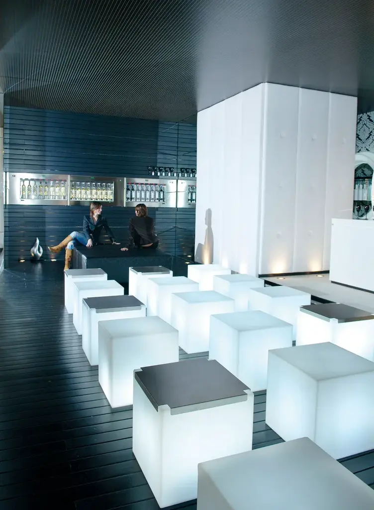 Cubo is a large family of lamps. Its sweet and sensual light is able to create a lounge and elegant settings in every indoor and outdoor contract. Cubo is one of the Slide best sellers and it is ideal to contemporary and minimal furnishing. Cubo is available in different dimensions and it could be a hanging lamp, a floor lamp or a table lamp, a luminous coffee table or a stool.Versions:- standard- lacquered- with light for indoor- with light for outdoor- LEDOptional: soft polyurethane cushion