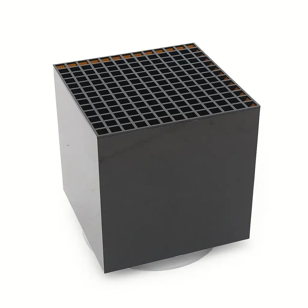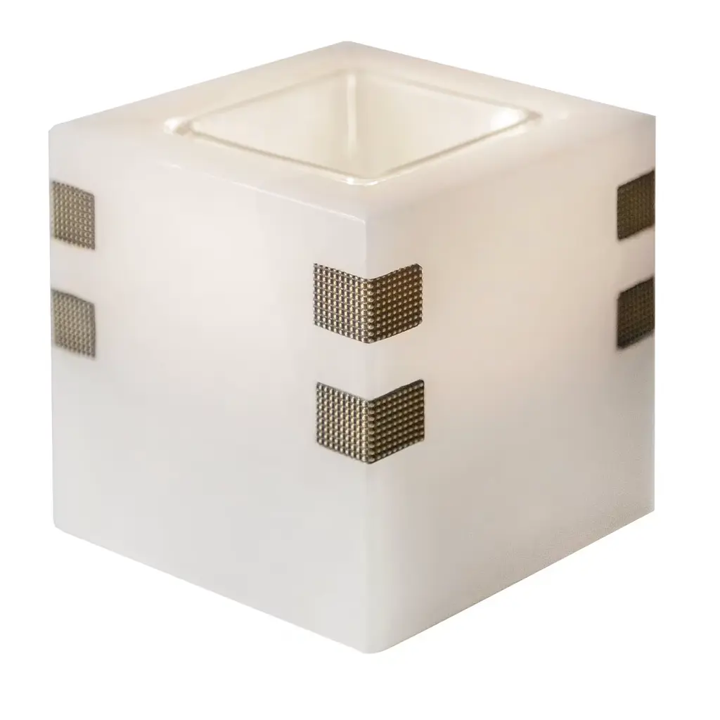 Designed by Studio OPI for Cini & Nils in the 1970s, this original plastic flower-holder cube is a fine example of modular design of the era. The piece features two internal grids designed to hold and secure flowers or branches, ensuring stable arrangements. Conceived exclusively as a flower holder, it can be paired with other elements from the same series – produced as vases or lamps – to create versatile and decorative compositions. The cube can be placed directly on the floor or displayed on raised surfaces. Condition: excellent overall condition, never used; one piece preserved in the original cellophane and another in the original box. Dimensions: Length 26 cm – Depth 26 cm – Height 29 cm Ref. C0843 This piece has an attribution mark, I am sure that it is completely authentic and take full responsibility for any authenticity issues arising from misattribution