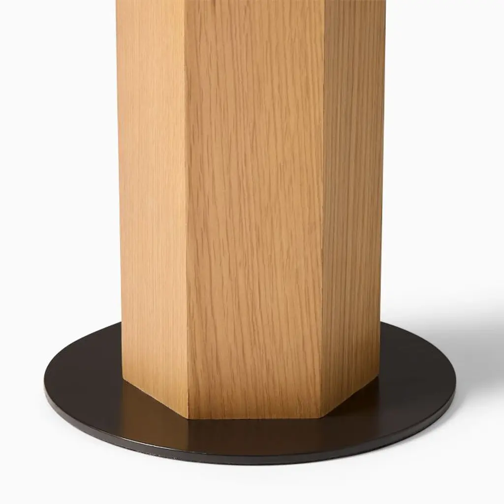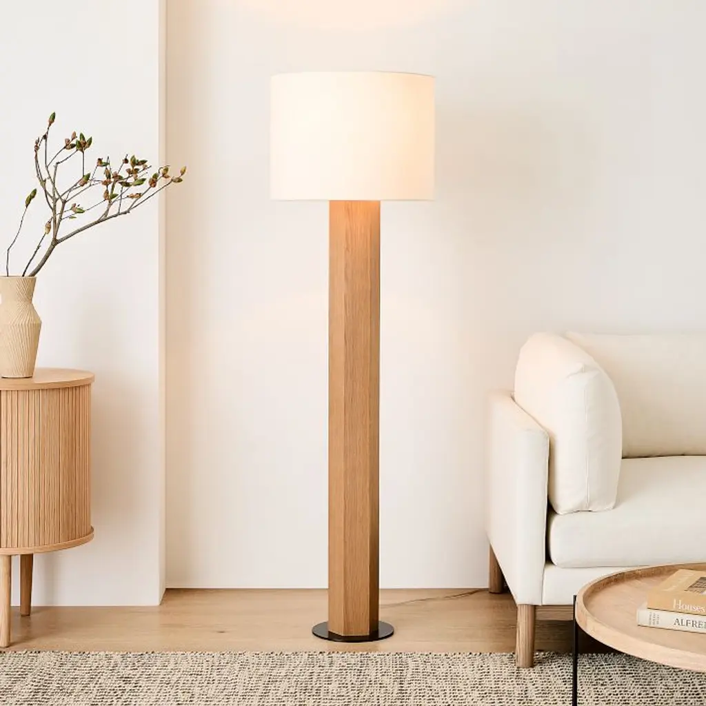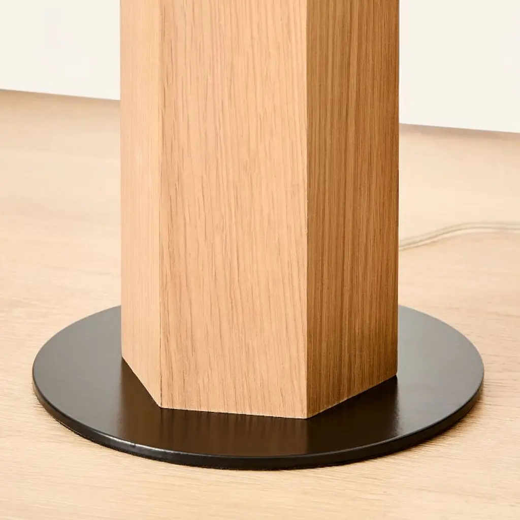 Wood veneer base in a Washed Oak finish. White fabric shade. We are a proud member of the Better Cotton Initiative. BCI Cotton is not physically traceable to final products. Clear PVC cord. Plug-in with E26 socket. UL listed. In-line On/Off rocker switch. Accommodates one 100W bulb or LED equivalent (included). Compatible with dimming smart bulbs (sold separately). Made in a Fair Trade Certified™ factory, empowering workers who made it. This contract-grade item is manufactured to meet the demands of commercial use in addition to residential. See more. Made in India.