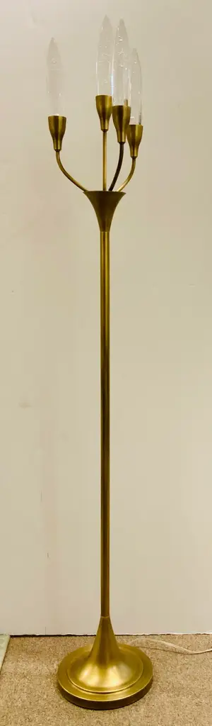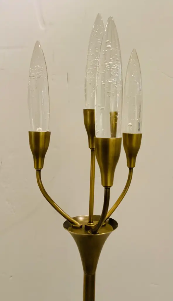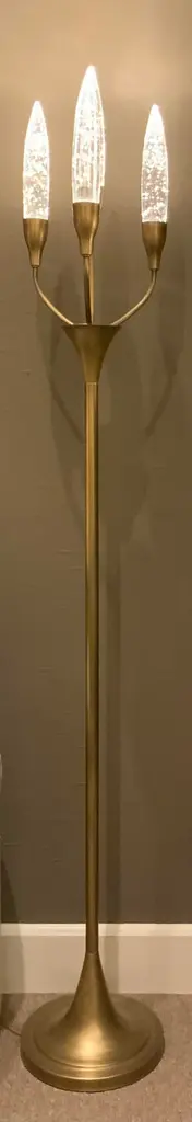 Stylish Currey & Co, Modern Satin Brass Finished Bubble Glass Floor Lamp, LED acrylic bubble glass, showroom floor sample, prototype