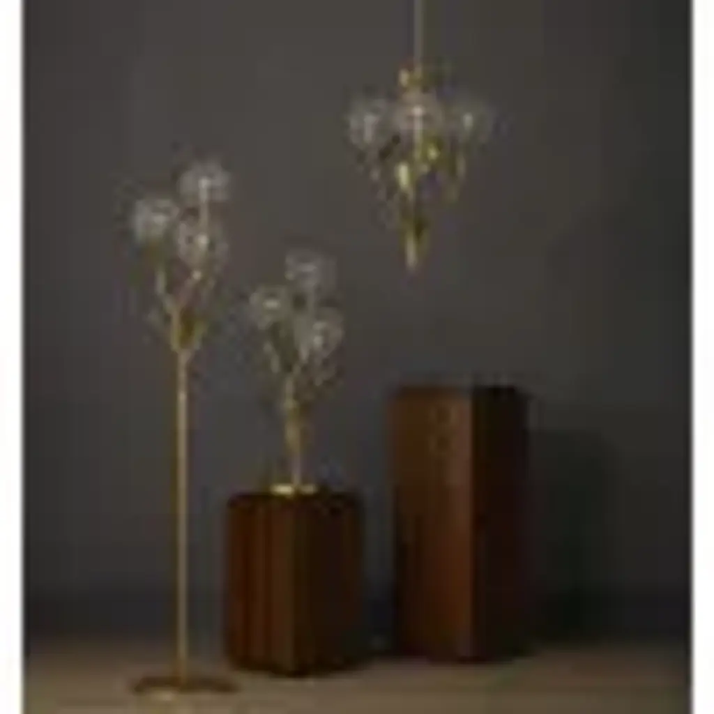 The Dandelion Silver & Gold Floor Lamp is a masterful composition that celebrates its namesake flower. The puff-balls that surround the bulbs are made of nails that are bent and welded together, a process that is extremely labor intensive. Made of wrought iron, the lamp's base, stems, and leaves are in a contemporary gold leaf finish, while the floral elements are in a mix of contemporary silver leaf and contemporary silver finishes. This special piece expressively celebrates nature. Wipe clean with a soft, dry cloth or static duster. Always avoid the use of harsh chemicals or abrasive cleaners as they may cause damage to the item's finish. Due to the use of natural materials, handmade craftsmanship, or hand finishing, expect some color variances. Hand crafted pieces may have slight size differences.