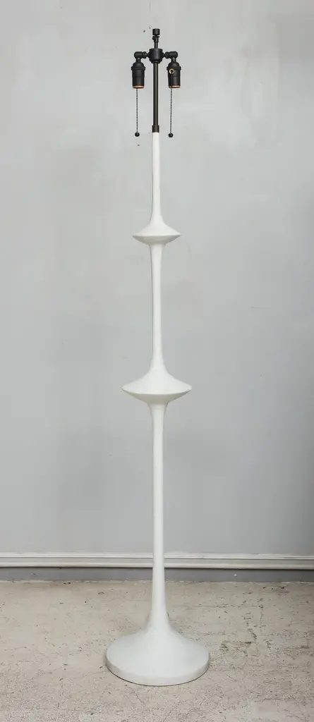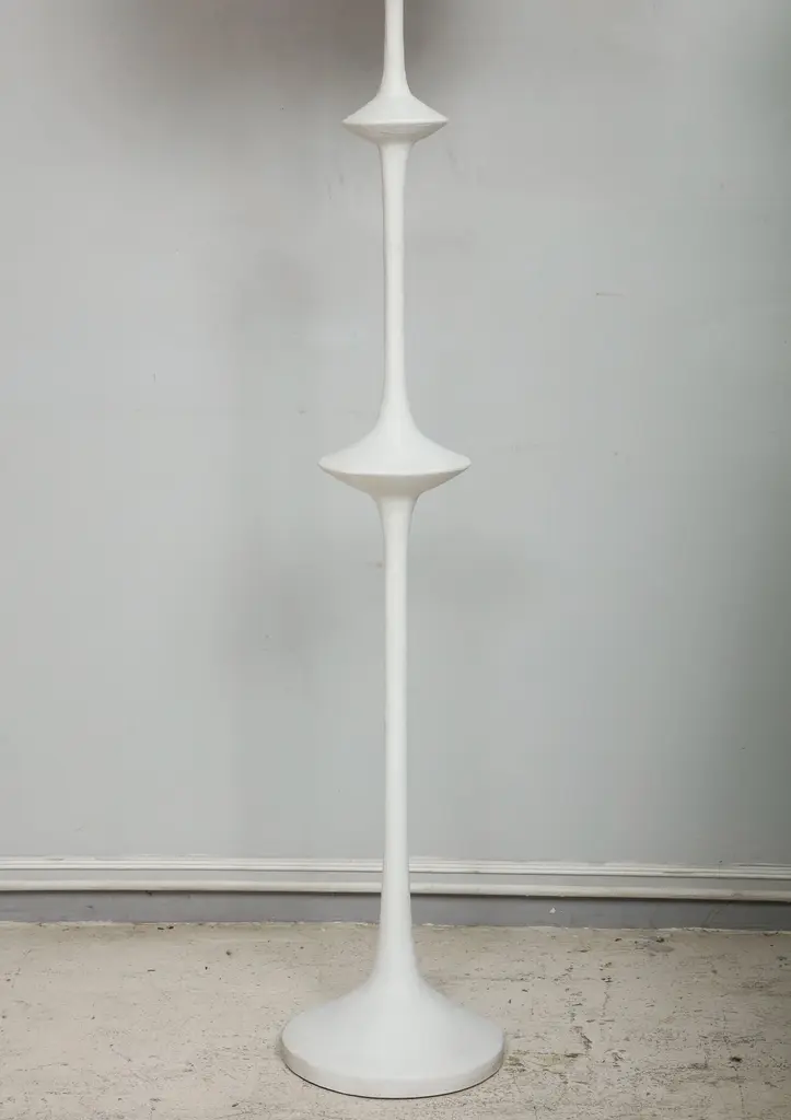 Custom plaster fixture / floor lamp in the Giacometti Manner.The lamp shade is not included.Please note that this fixture is customizable.Lead Time for custom made is 8-10 weeks.We currently have one available.NOTE: We highly recommend that our plaster items be crated while in transport.