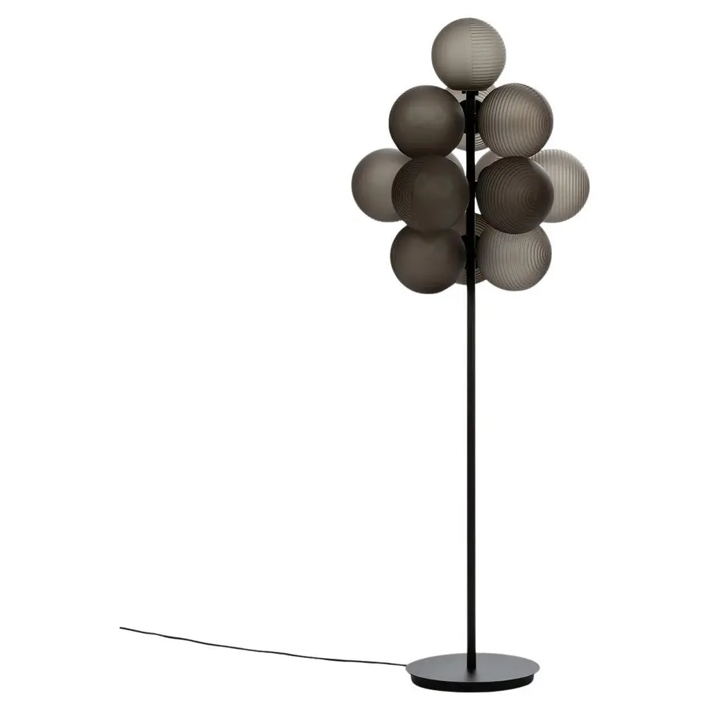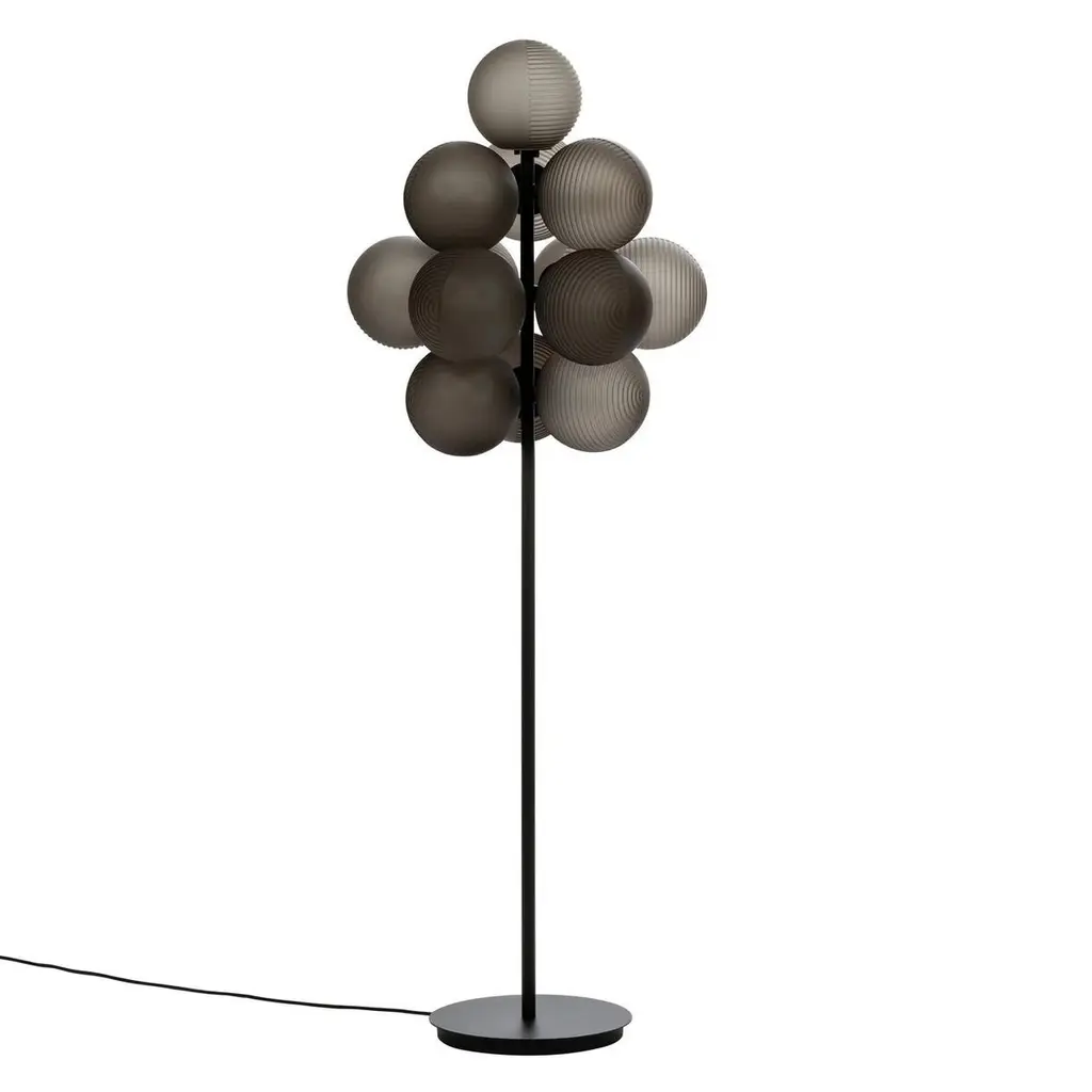 Sebastian Herkner’s Stellar Grape bundles numerous stellars to form a bunch in order to orchestrate lighting to a close encounter of real lighting innovation. The grape-like suspension light shines in colour variations of one’s own choice: aubergine, smoky grey or transparent.Material: handmade glass + steelAdditional informationDimensionsN/ATypeFloor, PendantSizesmall, bigColour Glass ShadeAubergine, Smoky grey, Transparent