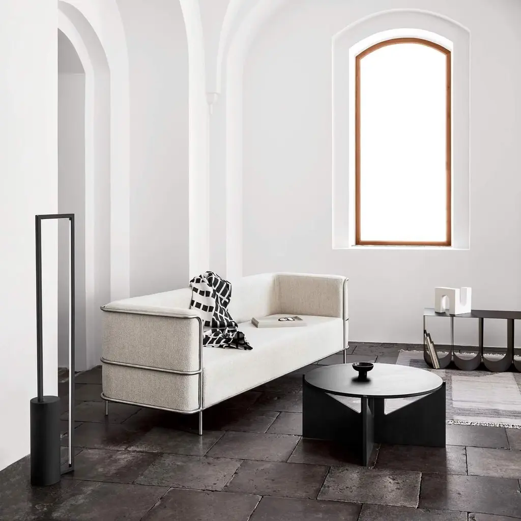Cylinder floor lamp by Kristina Dam StudioMaterials: Black steel. LED Lights.Dimensions: 14 x 25 x H 130cm.The Modernist furniture collection takes notions of modern design and yet the distinctive design touch of Kristina Dam Studio is evident in every single piece. Tangible and honest design for the modern interior.All our lamps can be wired according to each country.Designer's BiographyKristina Dam graduated from The Royal Danish School of Fine Arts, Architecture and Design in Copenhagen. In her designs, you will find her great love for architecture and minimalistic graphic lines.Everything originates from Kristina’s passion for design and art. She will find her inspiration when traveling, browsing Pinterest, blogs, Instagram, and talking to people.Her first product – a series of limited edition illustrations – quickly became a favorite in Scandinavian design stores, magazines, and homes. Today Kristina Dam Studio has developed into a design powerhouse of furniture and accessories. Two collections are launched every year and we collaborate with upcoming as well as established designers.Kristina Dam Studio was founded by graphic designer and architect Kristina Dam in 2012. The initial design idea for the studio was to create industrial designs that had a more art-based approach. The idea of making art and interior design merge, both in furniture, accessories, art prints, and illustrationsWe call our design approach "Sculptural Minimalism". Designs by Kristina Dam Studio are graphic and architectural with a high level of detail and excellent craftsmanship. Furniture from Kristina Dam Studio is mostly made from natural materials. We believe that mastering the monochromatic palette enables us to create timeless and enduring designs. Distinct and beautiful - simplicity with an attitude. Honest materialsWe only use honest, genuine, natural, and carefully selected materials – and we treat them with respect. The majority of our collection is produced within the European Union. Our love for genuine materials is a part of our Nordic design inheritance – a legacy we take very seriously. Sculptural MinimalismThe major lines in the designs are graphic and architectural. A high level of detail and pristine craftsmanship are key are well. Kristina Dam Studio furniture pieces are assembled with spigot joints and dowels and produced in natural materials. You’ll find the same love for details in all of your designs.A sculptural approach to designKristina Dam Studio aims to design products with a sculptural approach. Designs that have character, style, and a bold expression that will add something extra to your interior. With each collection, at least one new sculpture is launched. That sculptural quality and approach are visible in all our designs.