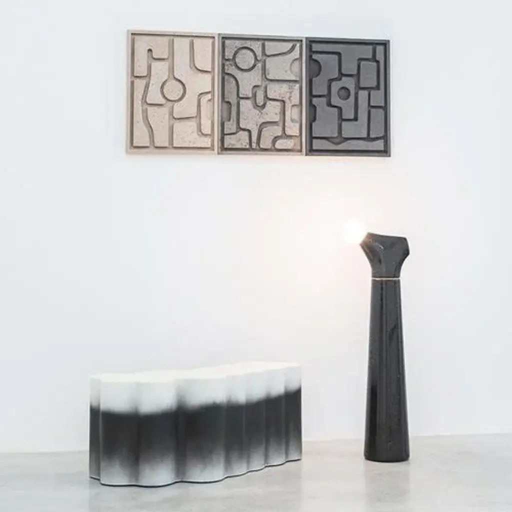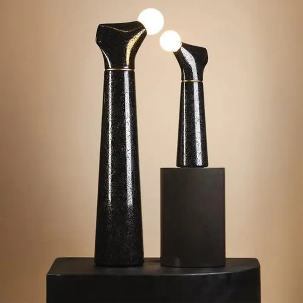 Noda ii signature table lamp one of a kind by manufacture xxi dimensions: w 126.5 x d 15 x h 62 cm. Materials: gold leaf, metal rings. Weight: 2.5 kg. Light is essential for creating a cosy atmosphere in our homes. Our lighting collections are made from matière papier, an eco-responsible composite formulated from recycled cellulose. The new signature collection combines everything that makes us exploratory and creative. It always begins with the rigorous choice of raw materials. Thanks to this experience and precise know-how, up to 250v (europe/uk standard).