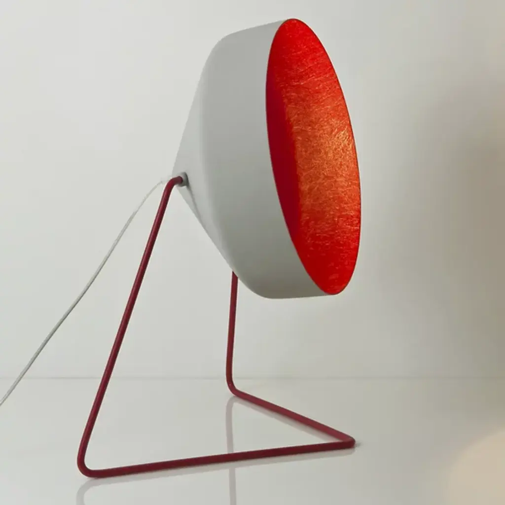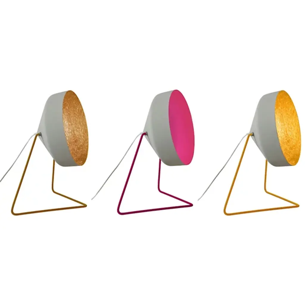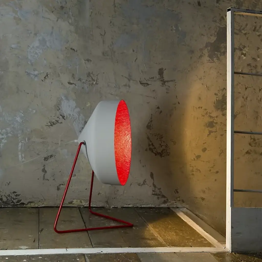 Both bright and muted, the Cyrcus Cemento Floor Lamp is a modern light fixture showcasing a unique color combination that beautifully complements a range of decors. Low to the ground, this modern floor lamp stands just below 2 feet, and features a shade made from nebulite, which is a combination of resin and fiberglass. The interior of the shade features a pop of color while the exterior boasts a grey finish achieved through a cement effect paint. The shade is supported by a cantilever base made from steel that is finished with a corresponding color to the interior shade. The shade is also adjustable and can be rotated up to change the direction of light. Perfect in both residential and commercial spaces, this decorative floor lamp adds warm, ambient light as well as a touch of color to any environment.