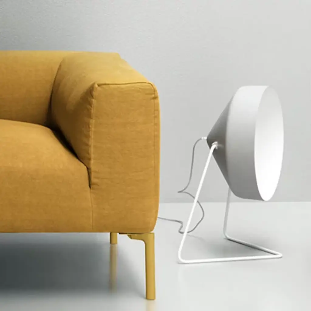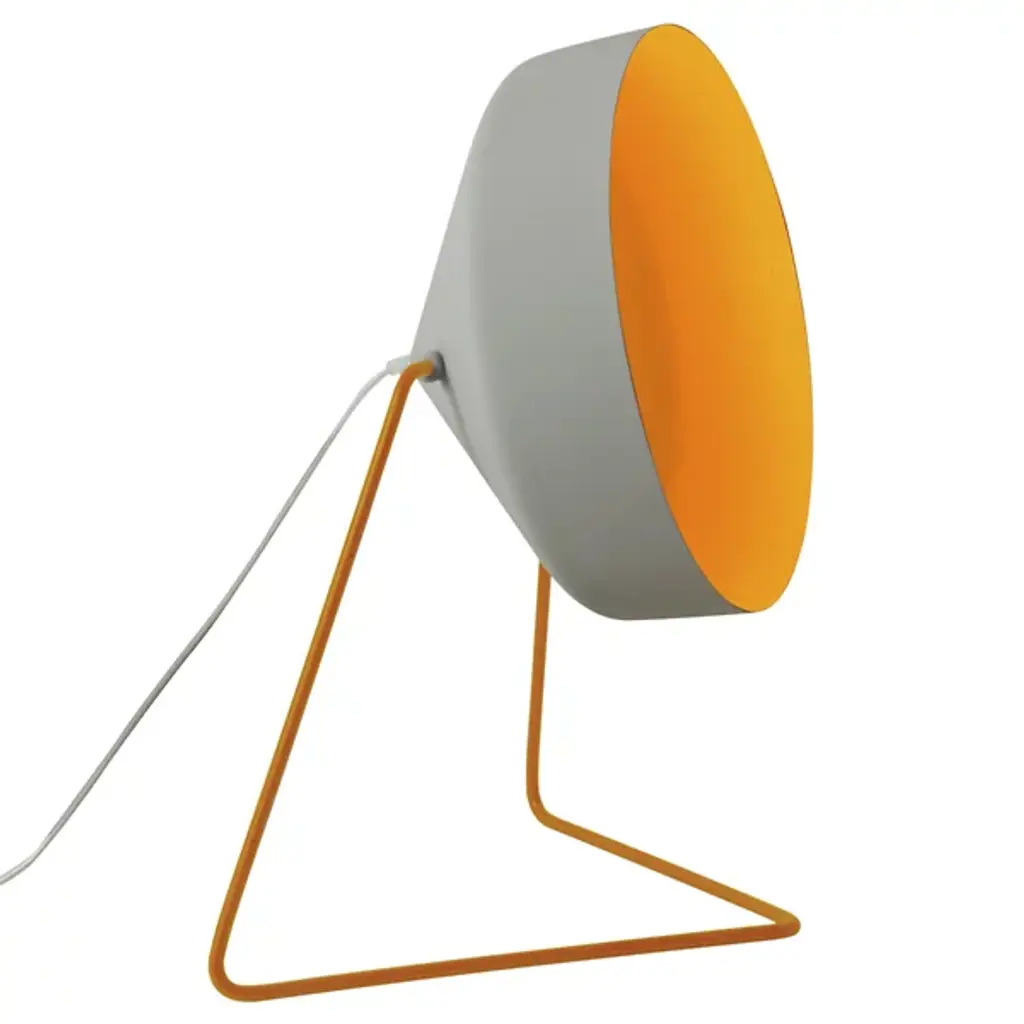 Both bright and muted, the Cyrcus Cemento Floor Lamp is a modern light fixture showcasing a unique color combination that beautifully complements a range of decors. Low to the ground, this modern floor lamp stands just below 2 feet, and features a shade made from nebulite, which is a combination of resin and fiberglass. The interior of the shade features a pop of color while the exterior boasts a grey finish achieved through a cement effect paint. The shade is supported by a cantilever base made from steel that is finished with a corresponding color to the interior shade. The shade is also adjustable and can be rotated up to change the direction of light. Perfect in both residential and commercial spaces, this decorative floor lamp adds warm, ambient light as well as a touch of color to any environment.