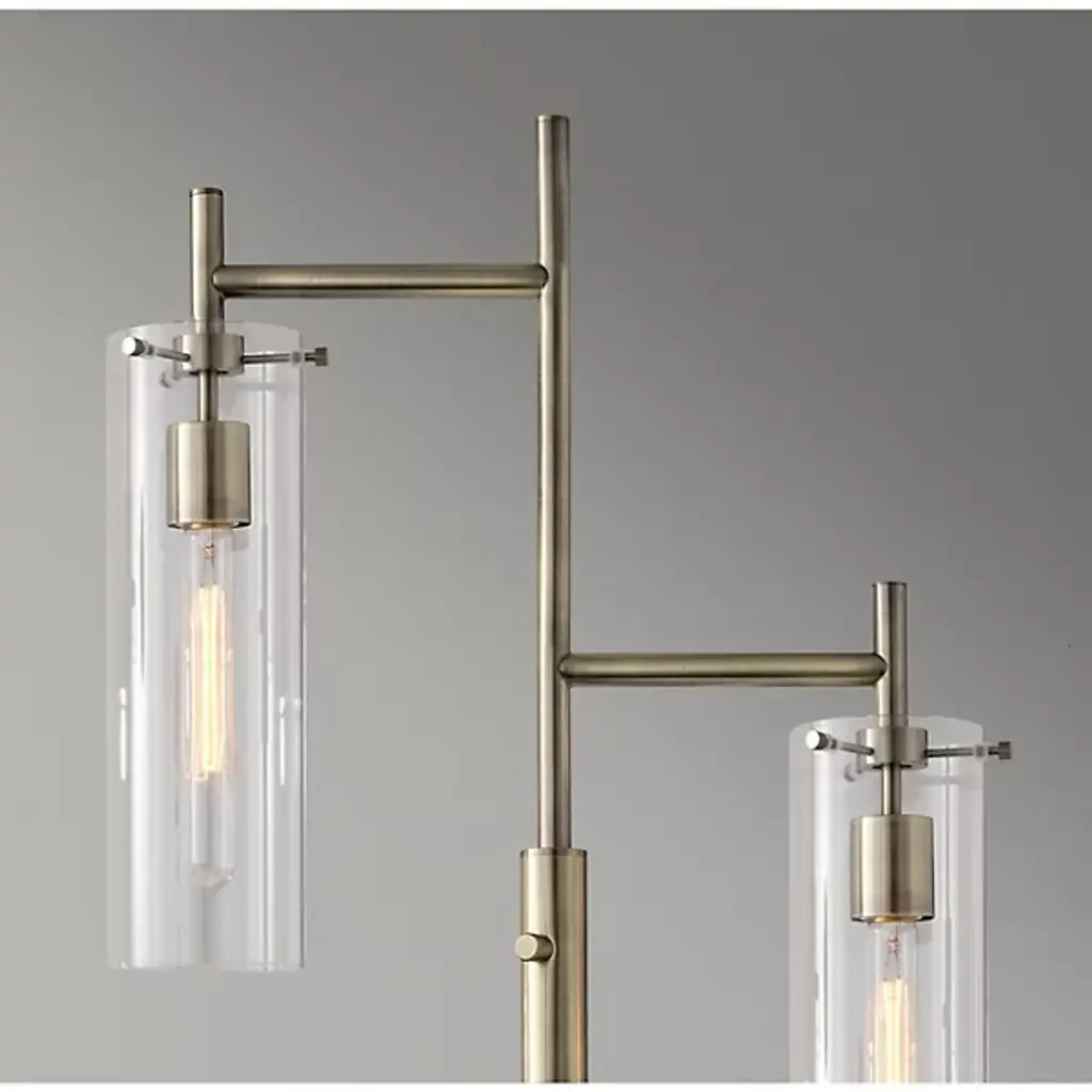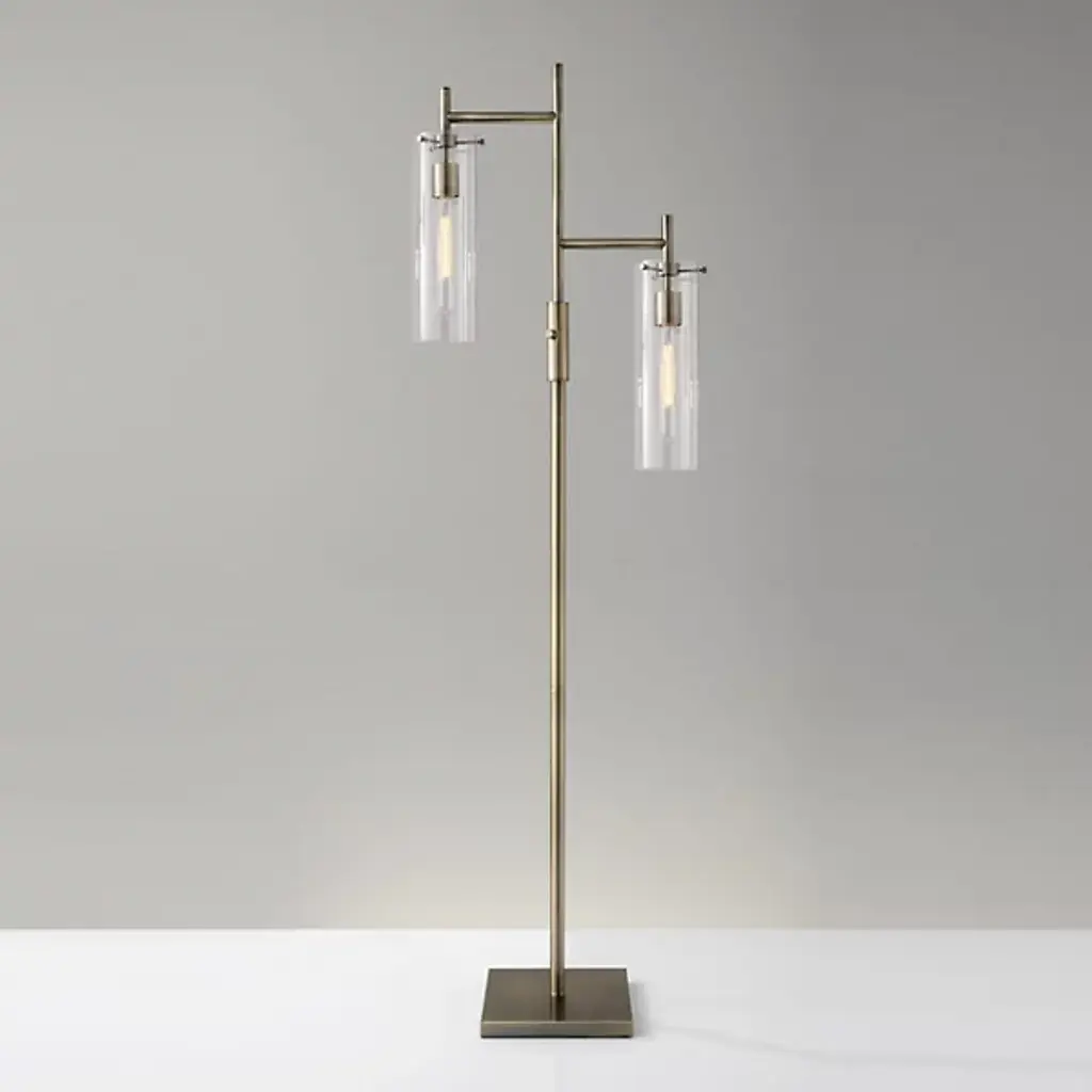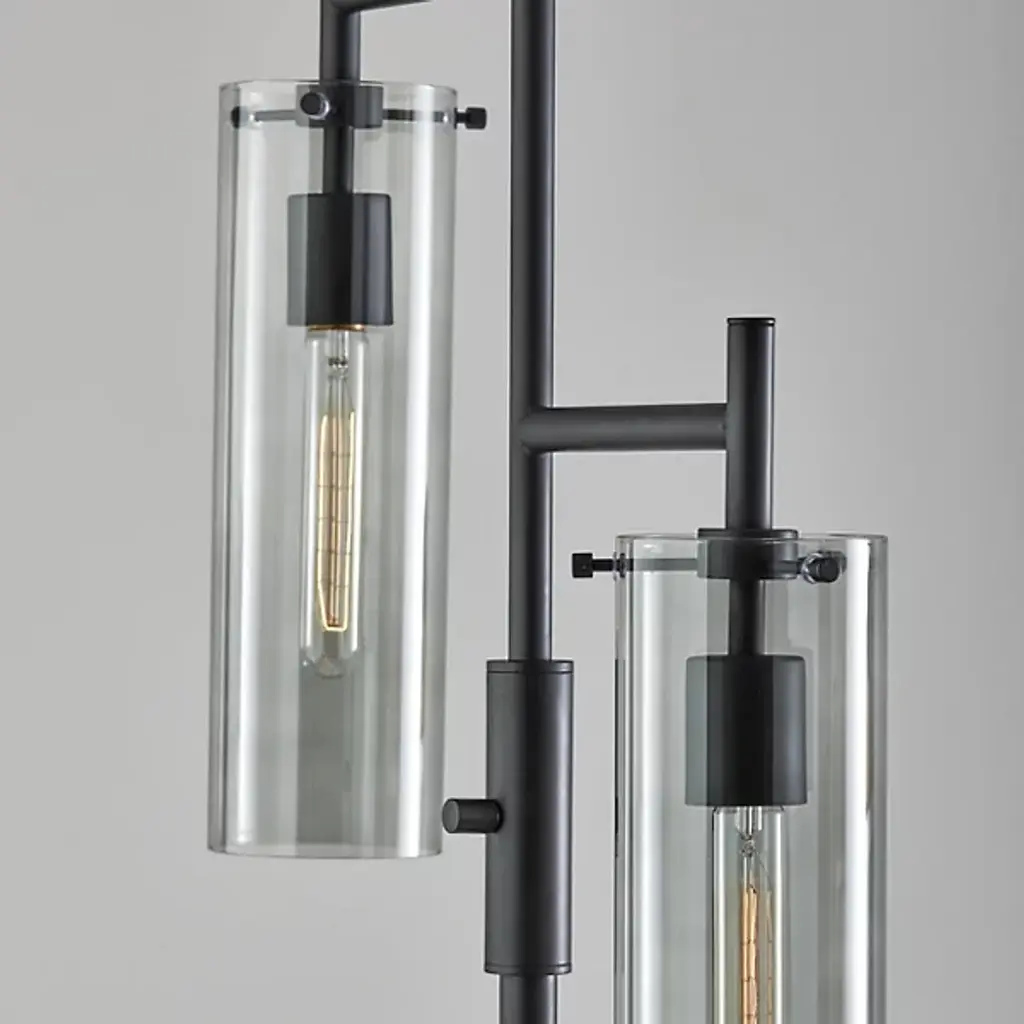 Bring a comforting layer of light to your home with the sleek silhouette of the Dalton 2 Light Floor Lamp from Adesso. A precise square base made of smooth metal extends a lengthy and slim, central body that itself mounts a pair of thin arms and cylindrical, clear glass shades. A tube-shaped bulb is tightly enclosed within each shade. They emit a warm and inviting presence to the space, creating the perfect ambiance after a long day.