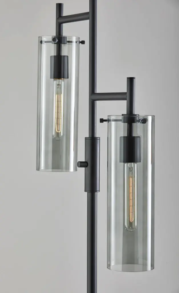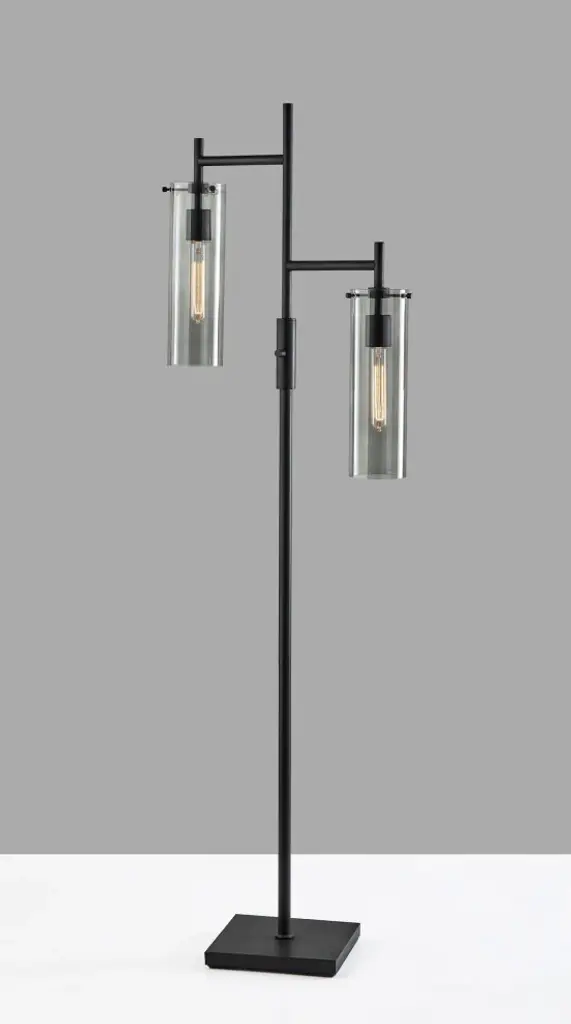The dual-light design is perfectly suited for larger spaces.The lamp brings a blend of industrial, vintage, and modern design elements.The vintage tube-style Edison bulbs are included.The 13.75" tall and 4.25" diameter cylindrical smoked glass shades highlight the vintage bulbs.The Dalton style is also available as a 1-light floor lamp, wall lamp, desk lamp, and pendant light.