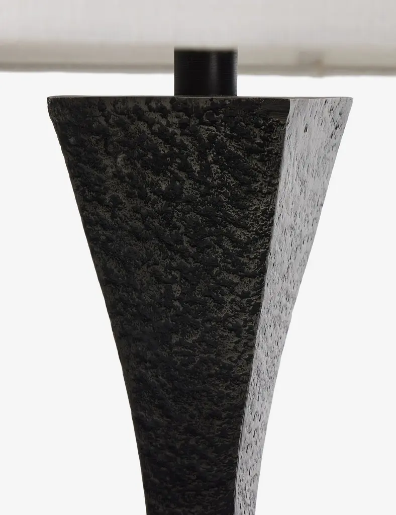 Subtle curves create the tapered silhouette of this vintage-inspired floor lamp. Pairing a forged metal base with a natural linen shade, it's the perfect lamp for texture and impact in any settingoffering bright, diffused light with a stylish silhouette in the room.