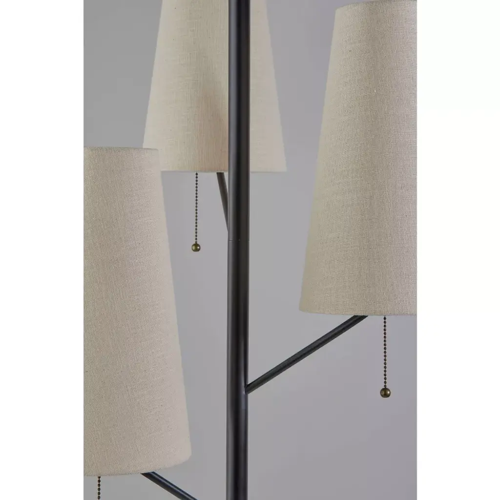 Daniel Floor Lamp Black - Adesso: Modern Industrial, 71", 3-arm, Antique Brass Accents, Pull Chain