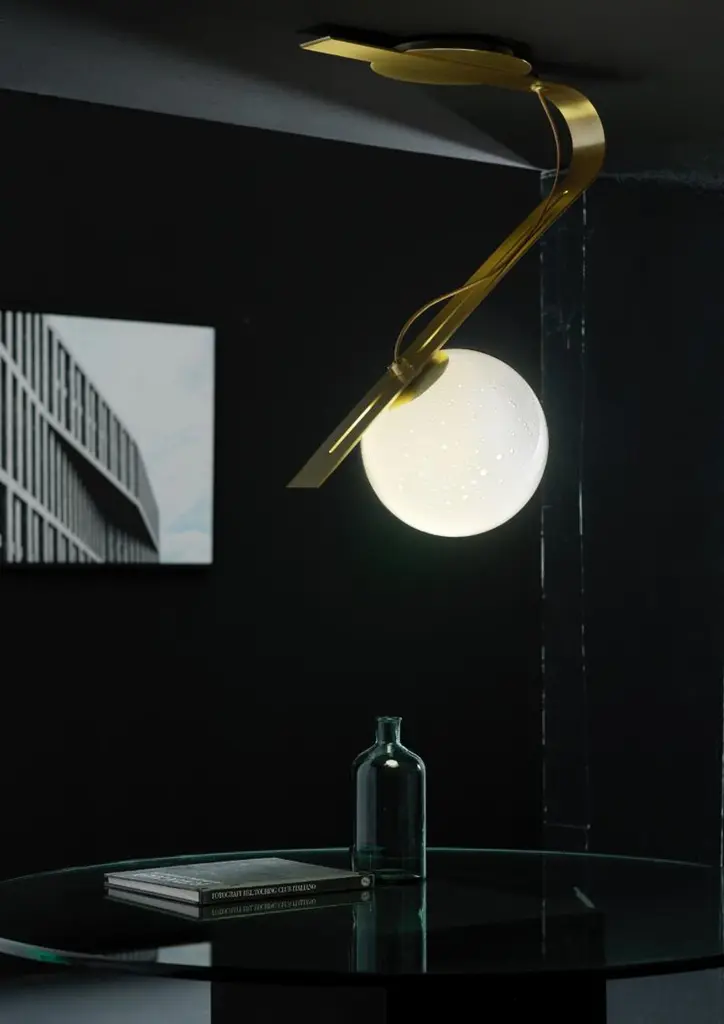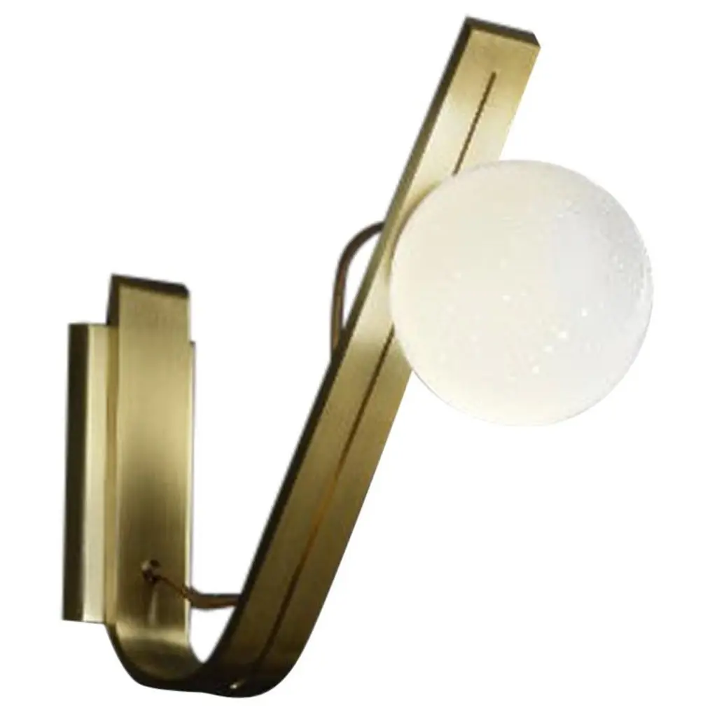 Daphne brass Italian sconce Daphne- Lamp made entirely of brass and glass with our “Pulegoso” effect. available in table, suspension, floor and wall version.glass diameter - 14 cm (table and wall lamp) - 30 cm (suspension and floor lamp)Materials: Brass30 brass rings with a satin brass finish, light source inserted in the hollow crystal volume.