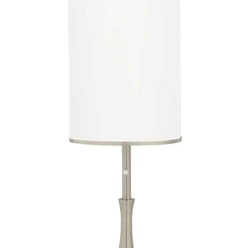PRODUCT DETAILS: 62" high overall. Bottom base is 11" wide. Shade is 36" high x 12" wide. Weighs 15 lbs. Uses one maximum 150 watt standard-medium base bulb (not included). On-off rotary switch. Contemporary modern glass floor lamp from the Color + Plus lighting collection. Daring Orange designer finish. Round glass body. Brushed nickel finish accents. Metal construction. White linen cylinder shade with top and bottom metal trim. 8-foot long silver cord and plug. DESCRIPTION: Liven up your living space with this contemporary floor lamp from the Color + Plus™ collection. It comes in a brushed nickel finish metal frame, which supports a round glass body in a designer Daring Orange finish. A long white cylinder shade covers over half the design. The result is an eye-catching modern glass floor lamp with brilliant coloring.