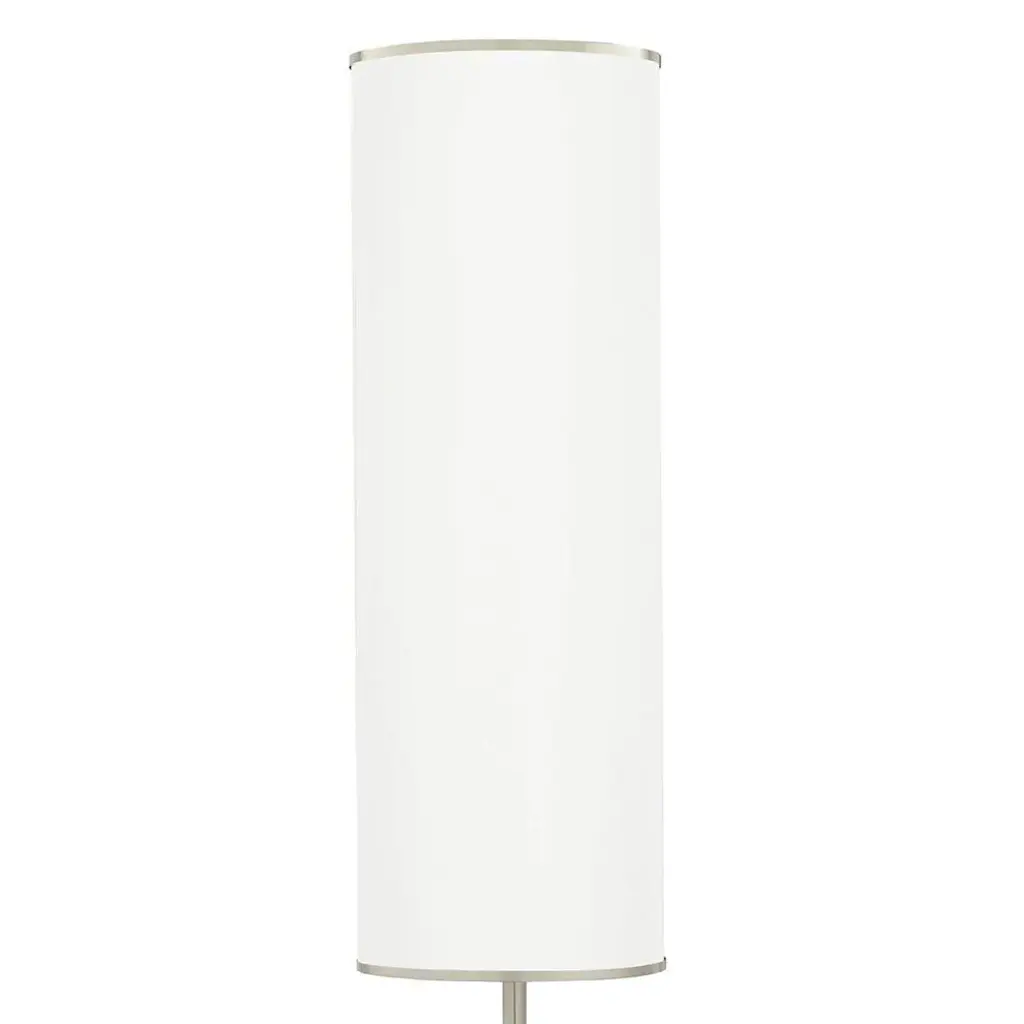 PRODUCT DETAILS: 62" high overall. Bottom base is 11" wide. Shade is 36" high x 12" wide. Weighs 15 lbs. Uses one maximum 150 watt standard-medium base bulb (not included). On-off rotary switch. Contemporary modern glass floor lamp from the Color + Plus lighting collection. Dazzling Blue designer finish. Round glass body. Brushed nickel finish accents. Metal construction. White linen cylinder shade with top and bottom metal trim. 8-foot long silver cord and plug. DESCRIPTION: Liven up your living space with this contemporary floor lamp from the Color + Plus™ collection. It comes in a brushed nickel finish metal frame, which supports a round glass body in a designer Dazzling Blue finish. A long white cylinder shade covers over half the design. The result is an eye-catching modern glass floor lamp with brilliant coloring.