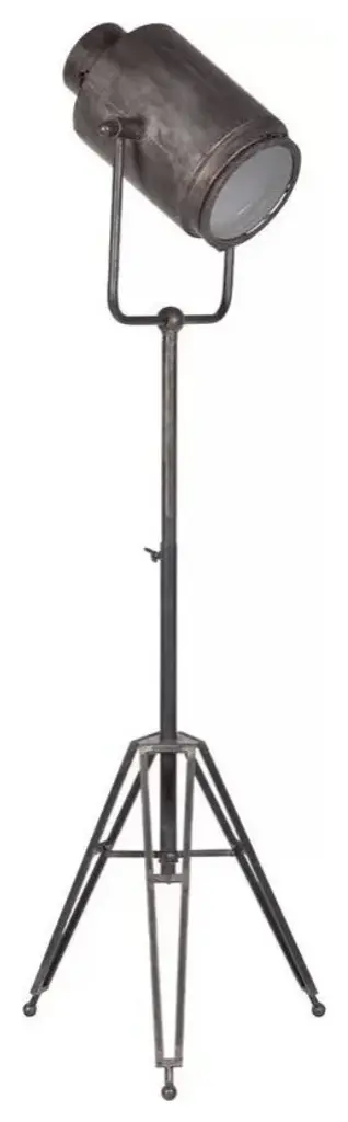The Debdou is a metal floor lamp inspired by cinematic spotlights. It features a metal shade with a glass inlay affixed to a three-legged base by a sleek, telescopic beam that can be adjusted in height from 51 inches to 75 inches. Finished in an antiqued, brushed gold-tone, the Debdou looks stunning in spaces based on the Industrial design style. The lamp uses a 60-Watt rated, E12 chandelier bulb (sold separately) that makes your space a radiant one.51"-71" Tall LampThe Debdou lamp measures 22.0" long by 22.0" wide by 61.0" high, and is equipped with a collapsible base that allows for an adjustment in height. Premium CompositionThe Debdou is expertly crafted from metal, resulting in a spectacular lamp that is not only visually enticing but also sturdy and substantial.Superior FinishFeaturing a gold colored polish, the Debdou is a spectacular lamp that boasts of a dazzling design.Warm, Ambient GlowThe 60-Watt rated, standard E26 bulb used in the lamp helps cast a warm, ambient glow that will set the mood just right. Industrial Inspired DesignThe Debdou features a sleek design that is inspired by cinema lights of the ''90s, which will surely make it an instant head-turner in an industrial style space. Easy AssemblyThe Debdou follows an easy assembly process which means that it is ready to be a part of your space as soon as it arrives.