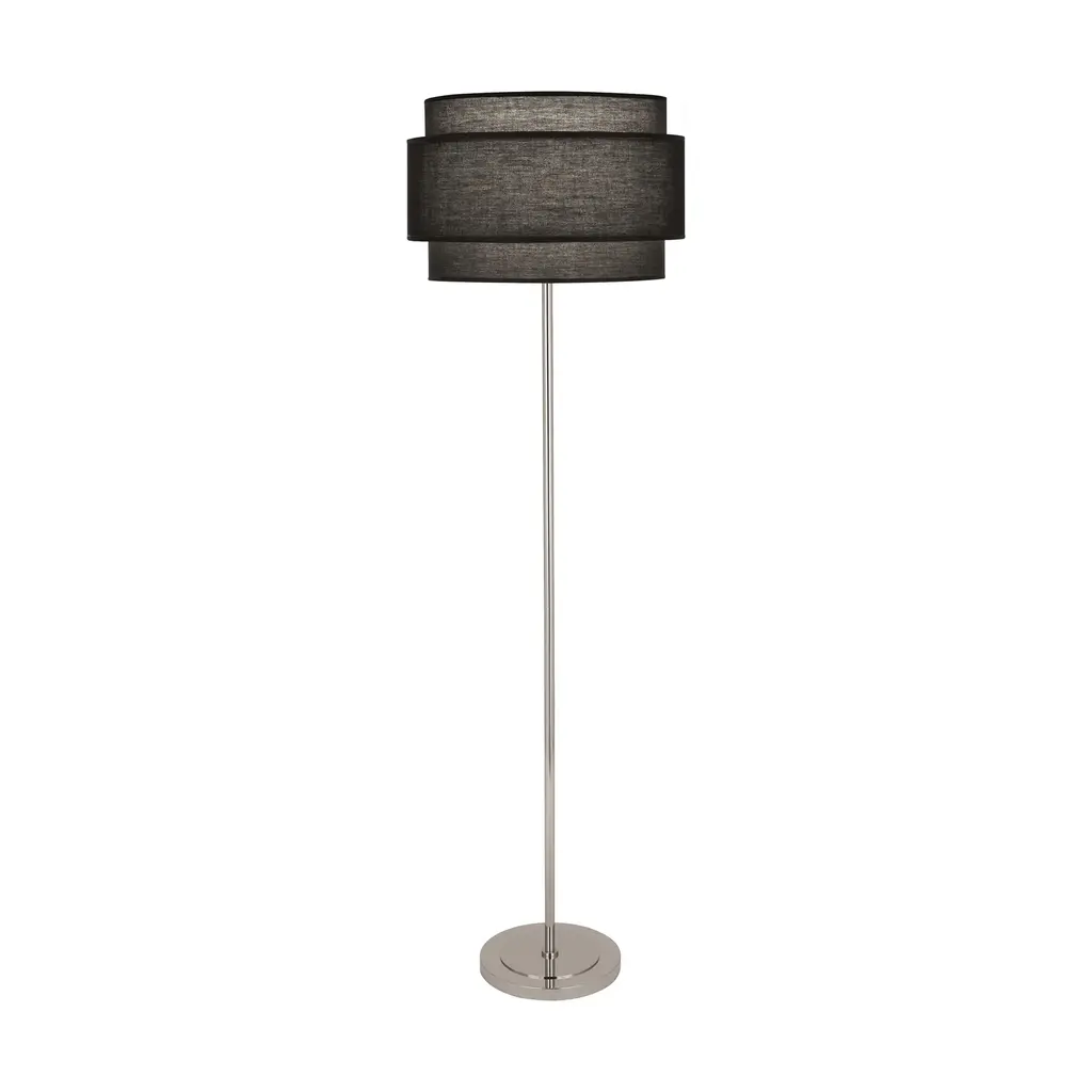 Simple and refined, the Decker Floor Lamp from Robert Abbey brings an elevated sense of style to its environment while remaining simple enough to blend in. A sleek metal base sends a thin stem upward to the lamp’s incandescent light source. Nested fabric shades are set atop the piece, filtering warm light outward while allowing light to funnel both upward and downward to fill the room. Elegant and minimal, this fixture sets a serene tone for the room as it brightens.