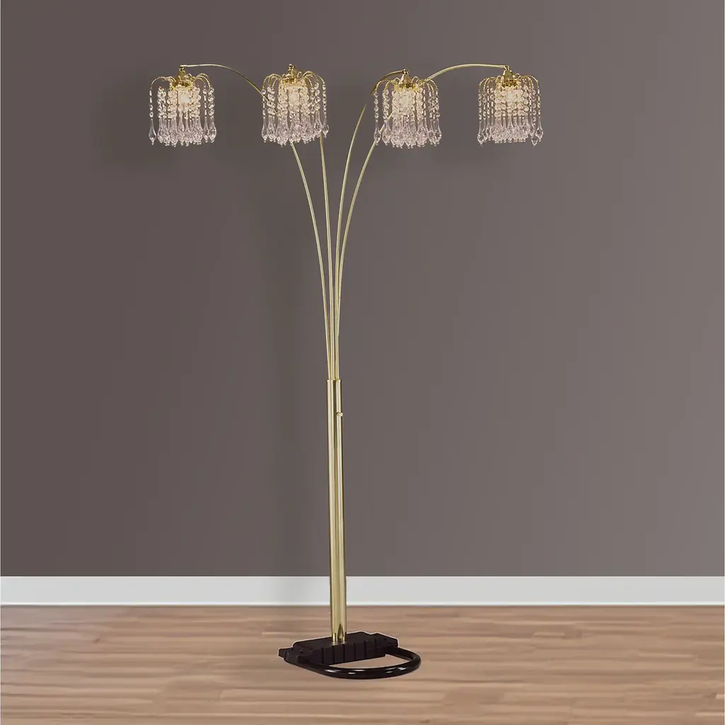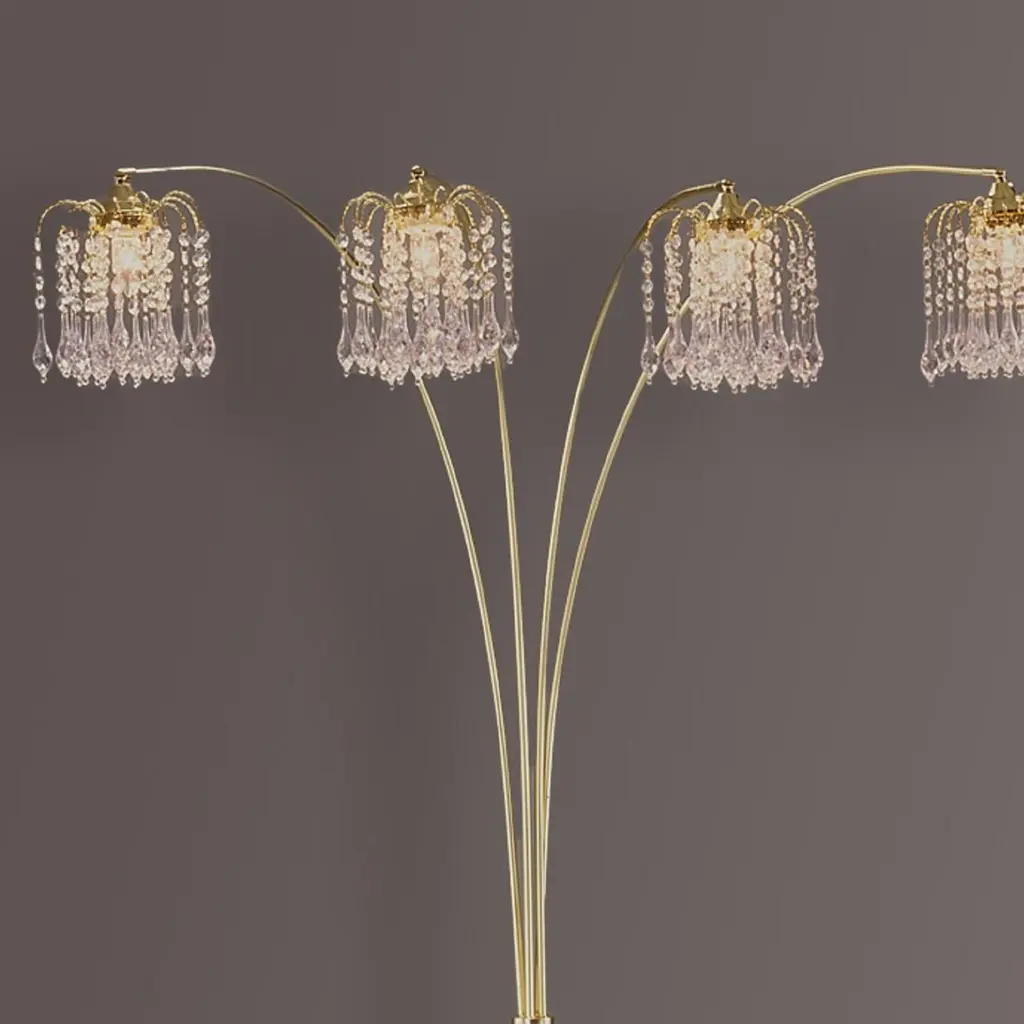 Transform your living space with the Modern Design Classic Luxury Multi-Head Floor Arc Lamp, a stunning blend of opulence and contemporary style.Featuring a half-moon radiant crystal inlay, this arc lamp exudes elegance and sophistication. The smooth metal rod adds a modern touch, perfectly complementing the lamp's luxurious design. The golden finish enhances the lamp's opulence, making it a statement piece in any living room. The multi-head lighting provides ample illumination, creating a warm and inviting ambiance.Choose the Modern Design Classic Luxury Multi-Head Floor Arc Lamp for a perfect blend of luxury, functionality, and modern design. It's the ideal piece to elevate your living room decor with its timeless elegance and radiant beauty. Product Features: Product Details: Product Dimensions: 84.00 "D x 84.00 "W x 84.00 "H, Weight: 34.00 lbs Package Dimensions and Package Weight: 66.93 "x 18.50 "x 3.35 ", Weight: 34.60 lbs. Main Material: Metal Scenarios : Living rooms, bedrooms and other indoor spaces Product assembly: easy to assemble Maintenance: wipe with a dry or damp cloth Base Finish: Metal