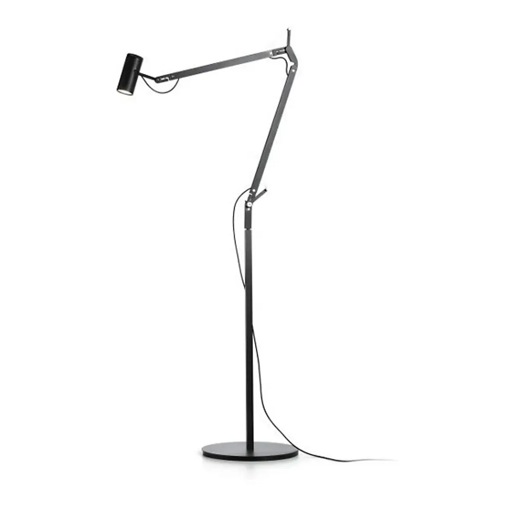 Volee is a Led Luminaire of the latest generation, in which the formal research is combined with technological innovation. Featured by an essential design, Volée switches on with an almost tennis style.Gesture: a simple wave of the hand under the head of this lamp activates an electronic device that switches the light on or off without any contact. A touch sensor over the head allows the flow of light to be regulated to four different levels of intensity (0% , 40%, 60%, 100%).A Time Out system automatically switches the lamp off after it has been on for 5 hours. Once the lamp is switched off, it keeps the last light intensity used.Floor lamp with direct light emission and adjustable head. Body in extruded aluminium, head in die cast aluminium, joints in die-cast aluminum and mechanical wires in steel. Available light grey GC (RAL 7044 matte), anthracite grey GS (RAL 7024 matte), white BI (RAL 9016 matte) and fluorescent yellow GI (RAL 1026 matte). Black power cable, ballast on cable and plug.Dimensions: cm 60 x 150 x 25.
