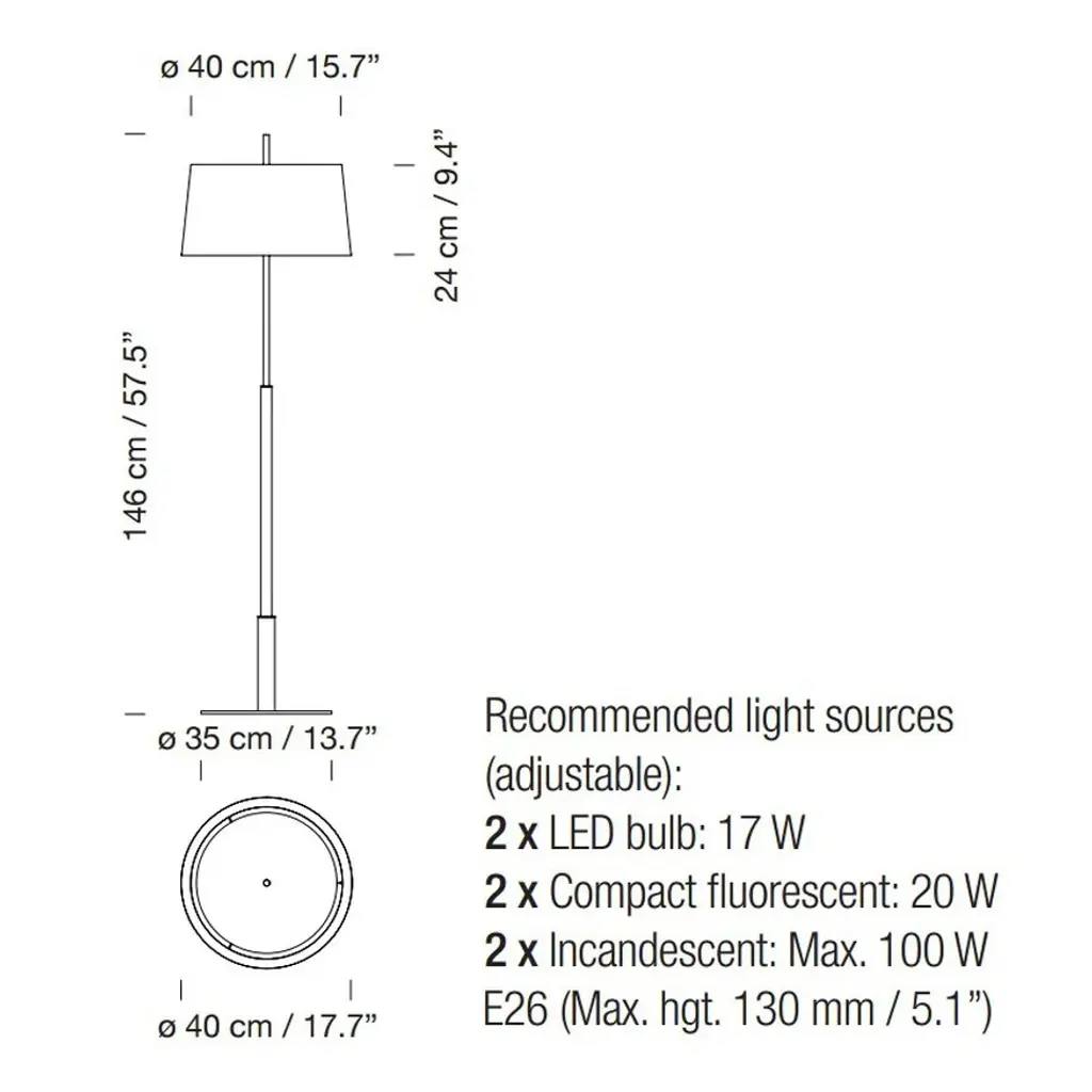 Based on the tabletop models, the Diana standard lamp and the Diana Mayor retain the firmness and clarity that characterize this family. Features