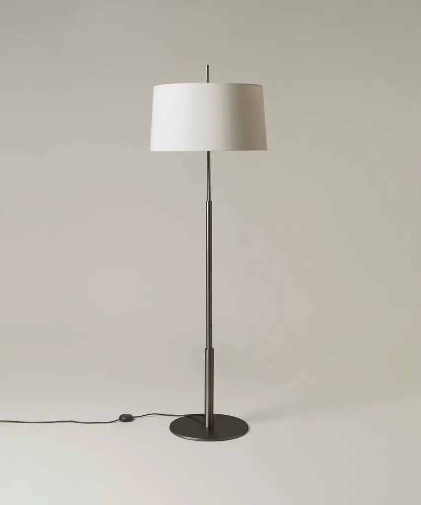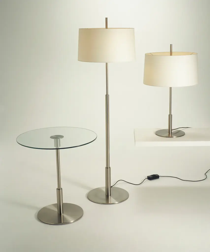 The Diana lamp pursues timelessness through the vocation of its creators. Its metallic structure and its linen shade are in perfect harmony. Designed to illuminate the new official office of the mayor of Olympic Barcelona, its print evokes a balance between classicism and modernity wherever it is placed. Produced by the Barcelona-based lighting purveyor, Santa & Cole.