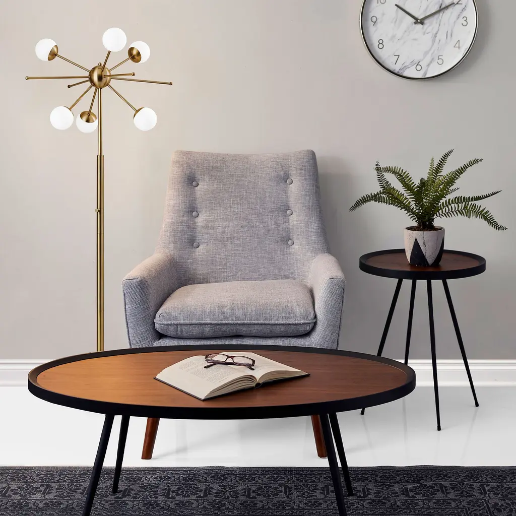 Its mid-century moden design complements a variety of interiors. Six glass globes create a beautiful, modern art piece. The sleek marble base is sturdy and keeps the lamp in place.