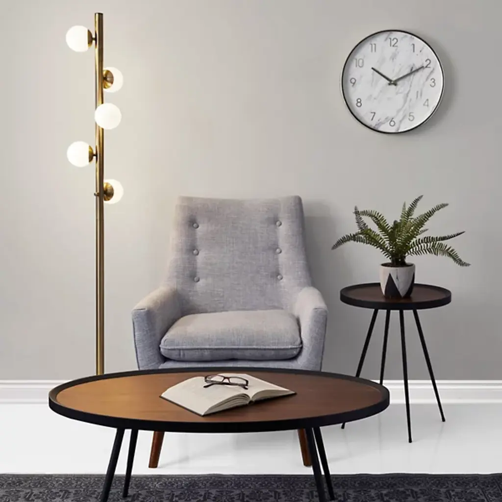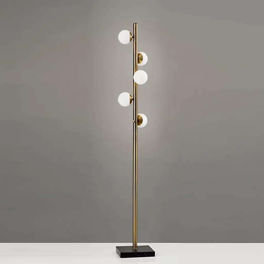 The Doppler Tree Floor Lamp by Adesso is a handsome addition to rooms. With a bold, squared, marble foundation, this lamp features a single, beautifully finished stem that stands tall as it displays an array of smooth, spherical shades that are arranged around its form. Each glass globe lends an even, energy-efficient layer of light to surroundings as this lamp brings a little mid-century modern flair to its environment.