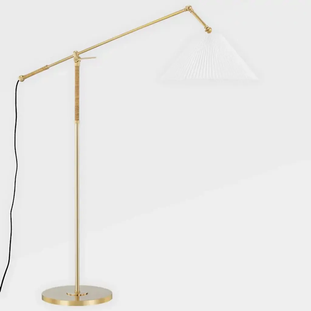 Decorate your living room, bedroom or home office with a natural-inspired light source in the Hudson Valley Lighting Dorset Floor Lamp. This lamp is designed by Mark D. Sikes and boasts a pleated shade and wrapped rattan accents. From the design to the performance, this fixture will dazzle with every use. Use this lamp with a traditional TRIAC dimmer to effortlessly set the mood and add extra light to any room in your home.