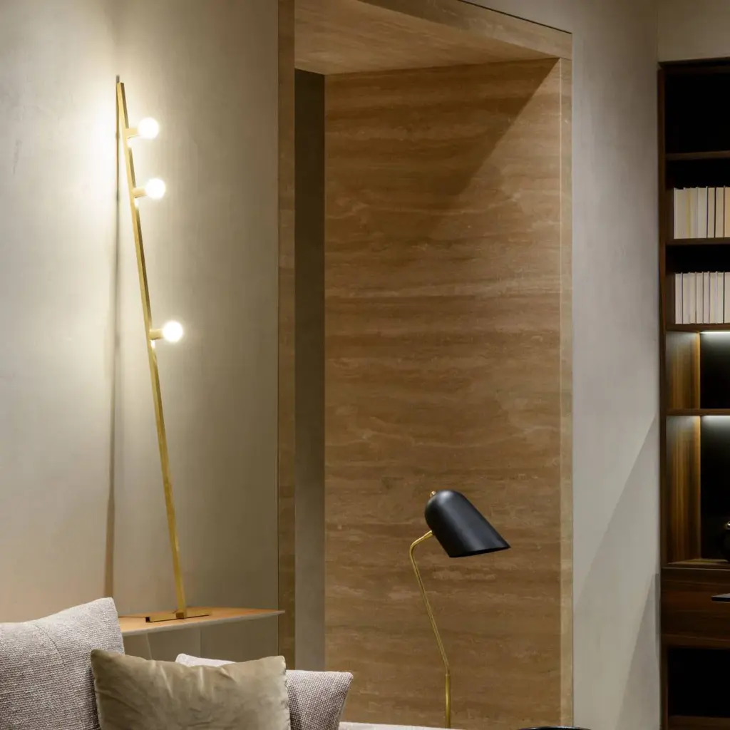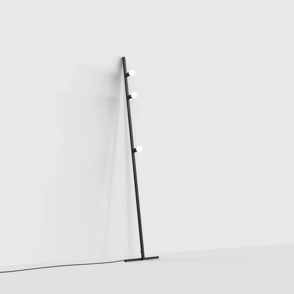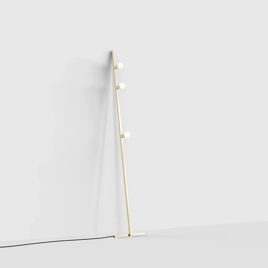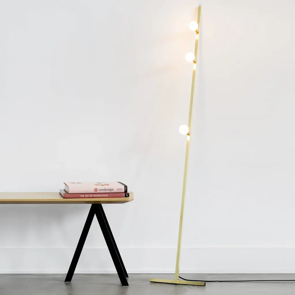 In the floor version, Lambert & Fils styles its linear Dot to lean against a wall, supported by an inverted T-shaped base. The slender lamp features exposed milk glass globes that provide an ordered sequence of gently diffused LED points of light. With a choice of brass or graphite finish, it’s completely handcrafted at the lighting maker’s Montreal atelier.