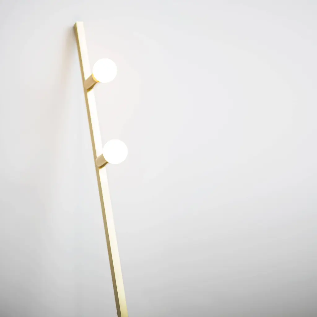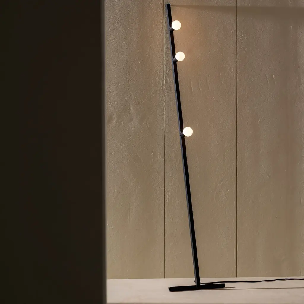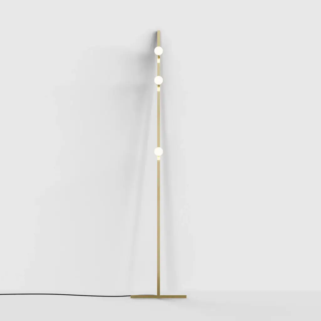 In the floor version, Lambert & Fils styles its linear Dot to lean against a wall, supported by an inverted T-shaped base. The slender lamp features exposed milk glass globes that provide an ordered sequence of gently diffused LED points of light. With a choice of brass or graphite finish, it’s completely handcrafted at the lighting maker’s Montreal atelier.
