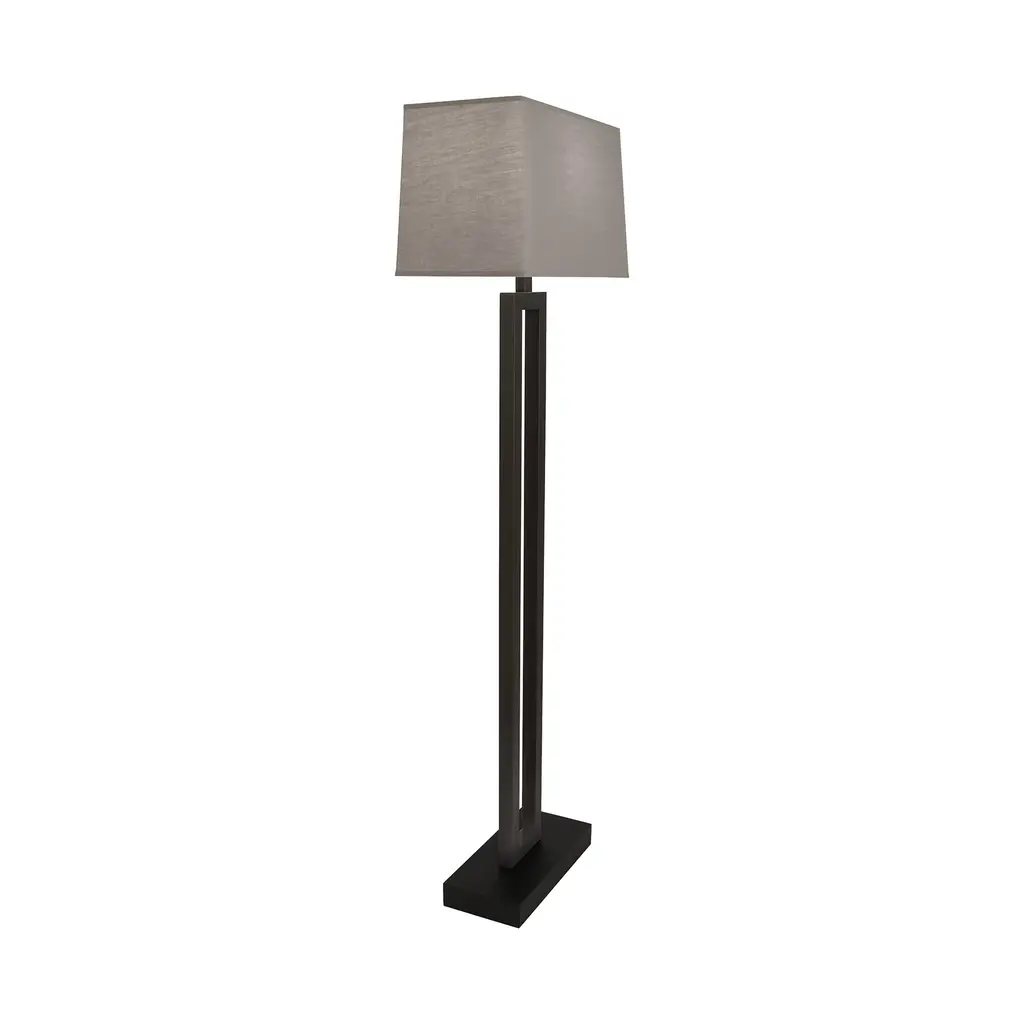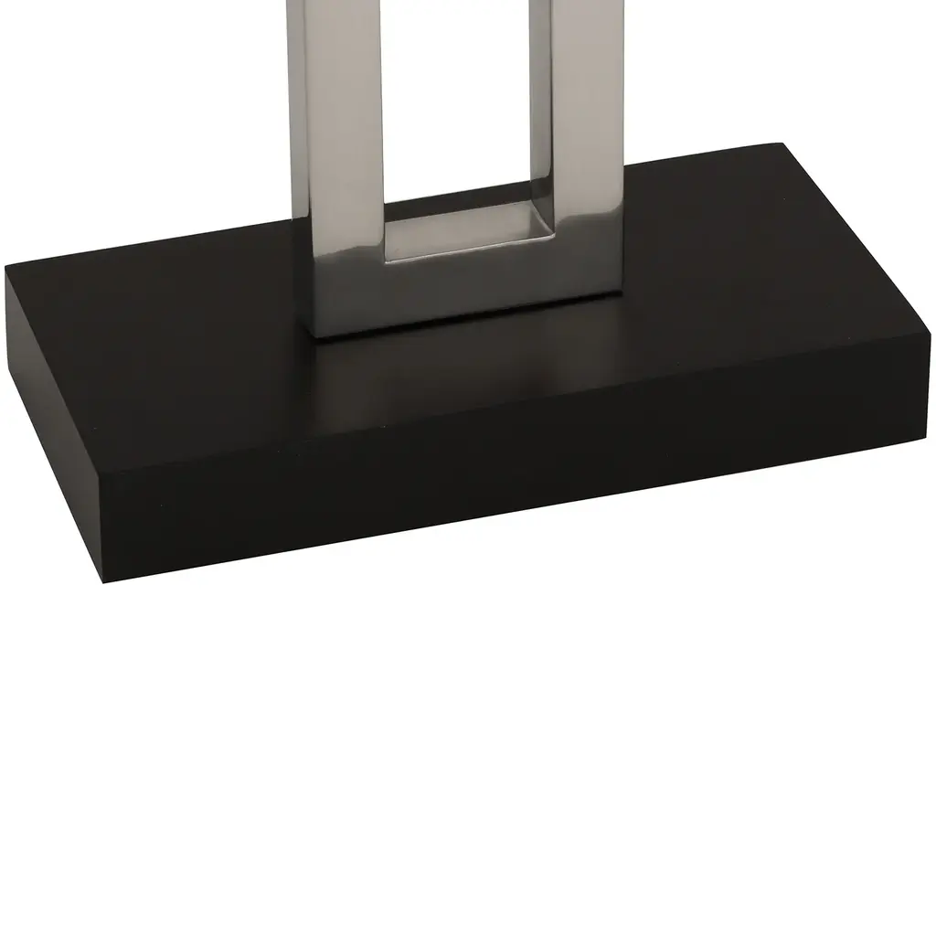 The Doughnut Floor Lamp from Robert Abbey combines minimalist design with elegant form. Its hollow rectangular shape, reminiscent of a long doughnut, is crafted from metal and finished with an ebony wood base for a refined look. The Rectangular Snowflake fabric shade softens the light, while the three-way switch offers versatile illumination to suit any mood or setting. A sophisticated addition that blends style and function seamlessly. Highlights