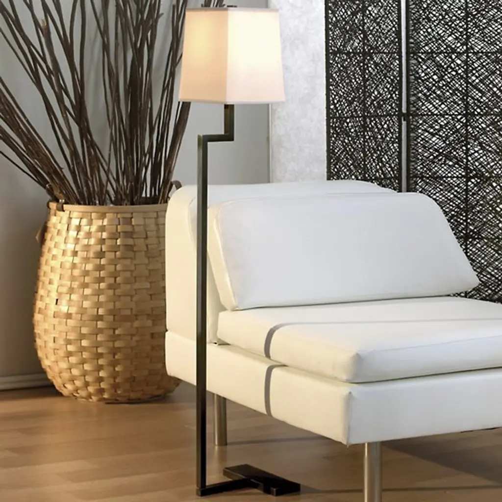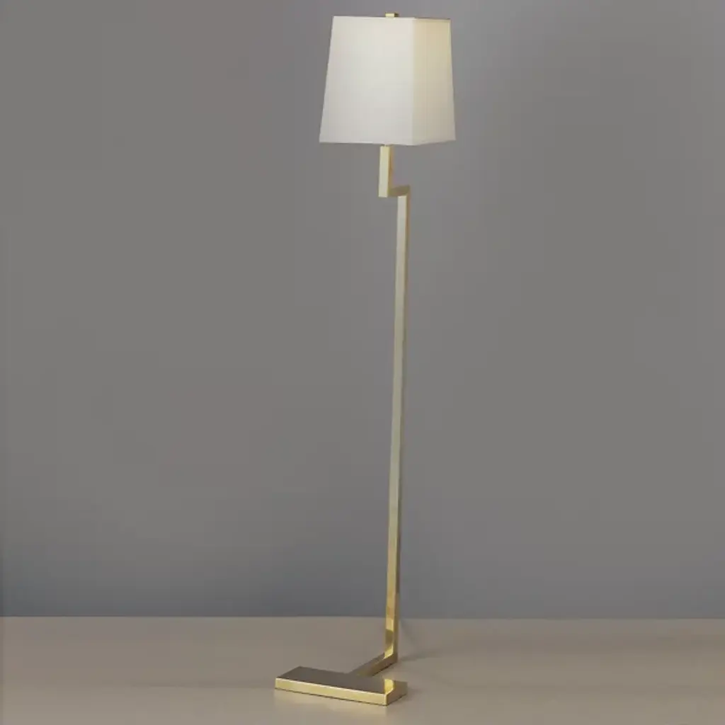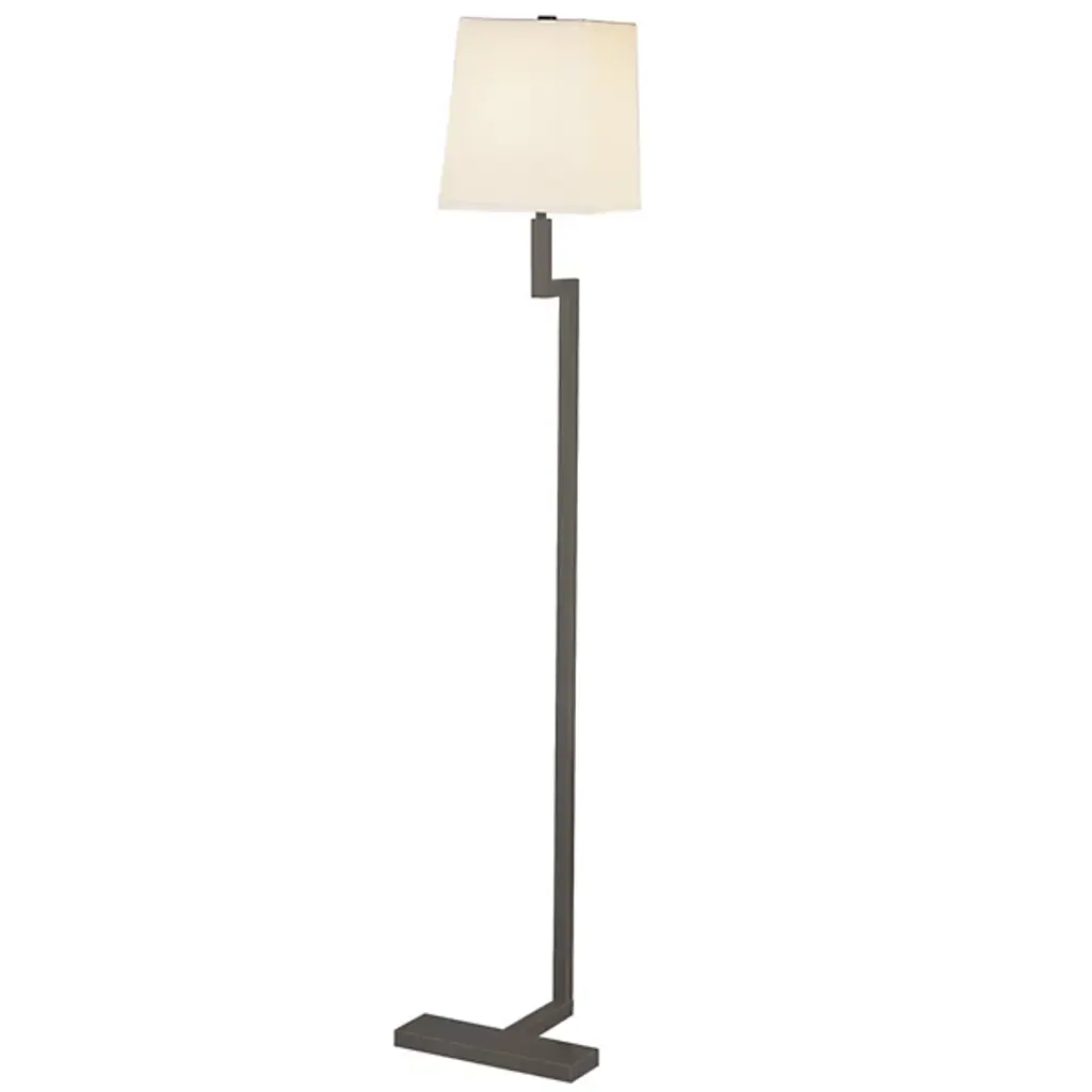 A fun and fashionable floor lamp. The Doughnut Floor Lamp by Robert Abbey is an inventive yet practical lamp that fits perfectly in the modern spaces. Featuring a gleaming metal base, this geometric lamp brings personality into your space easily fits anywhere you put it. Each Doughnut floor lamp has full-range dimming and comes with a neutral shade.