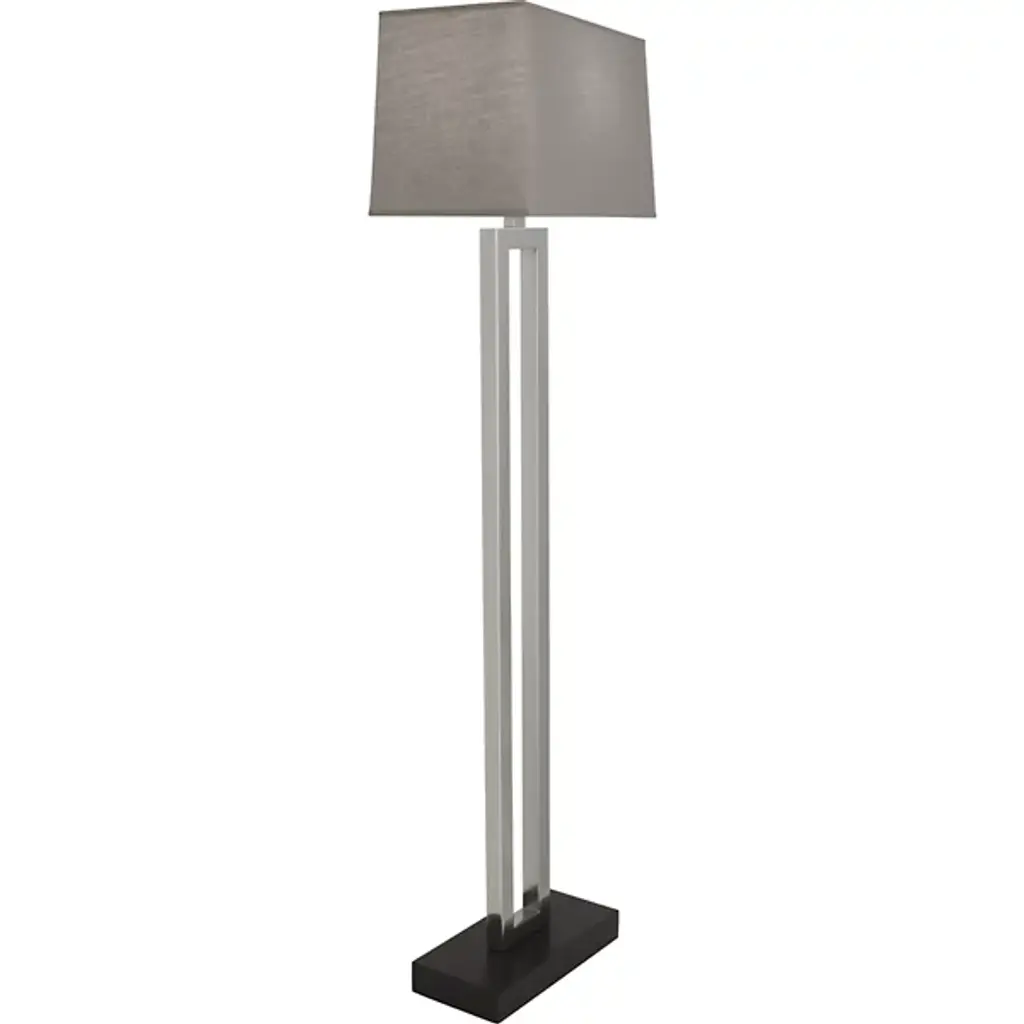 Minimally designed yet beautiful style you’ll want to take a bite of. The Doughnut Floor Lamp by Robert Abbey is an elegant fixture with a simple, hollow rectangular shape resembling a particularly long doughnut that’s available in several Metallic finishes. The Three way switch allows you to easily adjust the lighting to suit your needs. The Doughnut Floor Lamp features a Rectangular Snowflake fabric shade and Metal body, as well as an Ebony finished base made of Wood.