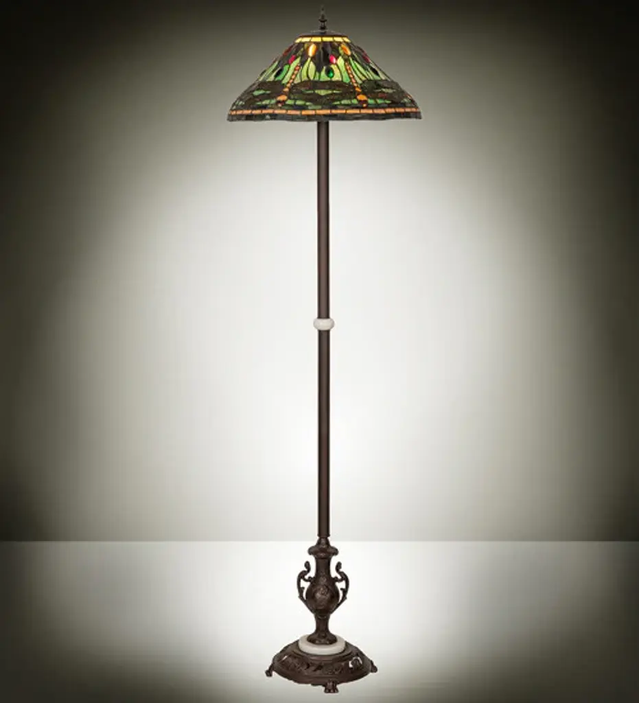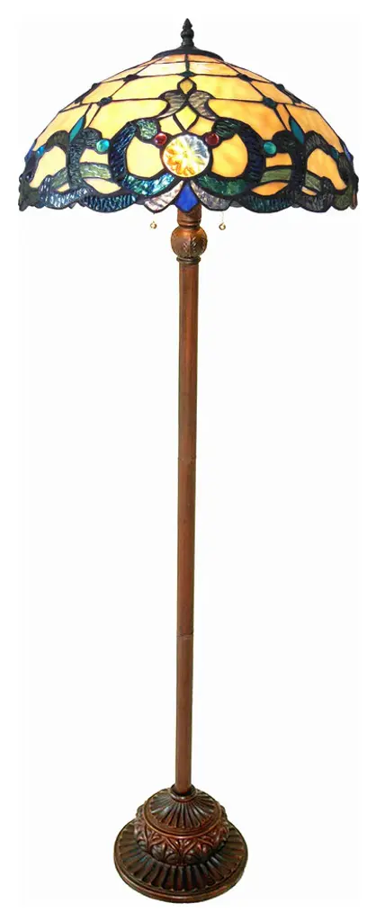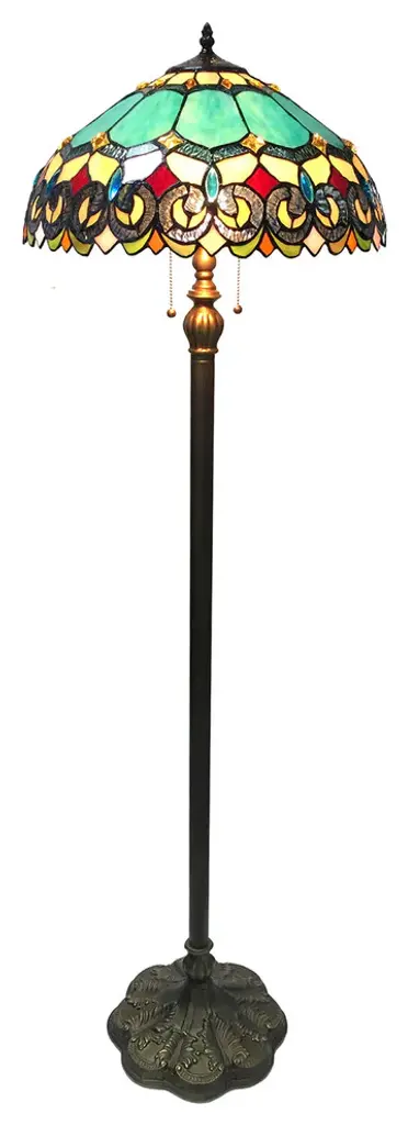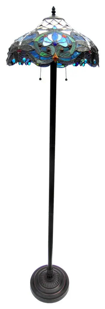 This Tiffany style Victorian design 2-light floor lamp features an antique bronze finish that will complement many decors throughout your home. Hand crafted from individually hand cut of 341 pieces copper-Foiled stained glass and 36 beads that will add color and beauty to any space.(2) 100 Watt max E26 Type A Bulb (not included)Pull chain341pcs glass cut, 36 beadsDownlightIndoor SettingGlass &/or Fabric Color: Multi-coloredShape: RoundBulb Type: Incandescent; LED; Compact Fluorescent (CFL)Max Wattage: 100Bulb Base: E26/Medium (Standard)Bulb Shape: A19Additional Warning or Disclaimers: Since these are hand crafted products, the exact color of glass pieces may vary. Colors of the glass will appear darker and less vibrant when not illuminated. Handmade glass will vary from one piece to the other; glass made at different times will also vary. Light bulbs used in lamps or ambient lighting may affect the appearance of the products. Stained glass product has been protected with mineral oil as part of the finishing process. Please use a soft dry cloth to remove any excess oil.UL Certification #: E246443