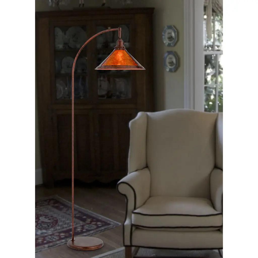Refresh your décor with this stylish rust metal arc lamp. It features a compressed natural amber mica shade for an warm and elegant difused light. This lamp is sure to make a great addition next to your favorite reading chair or sofa.