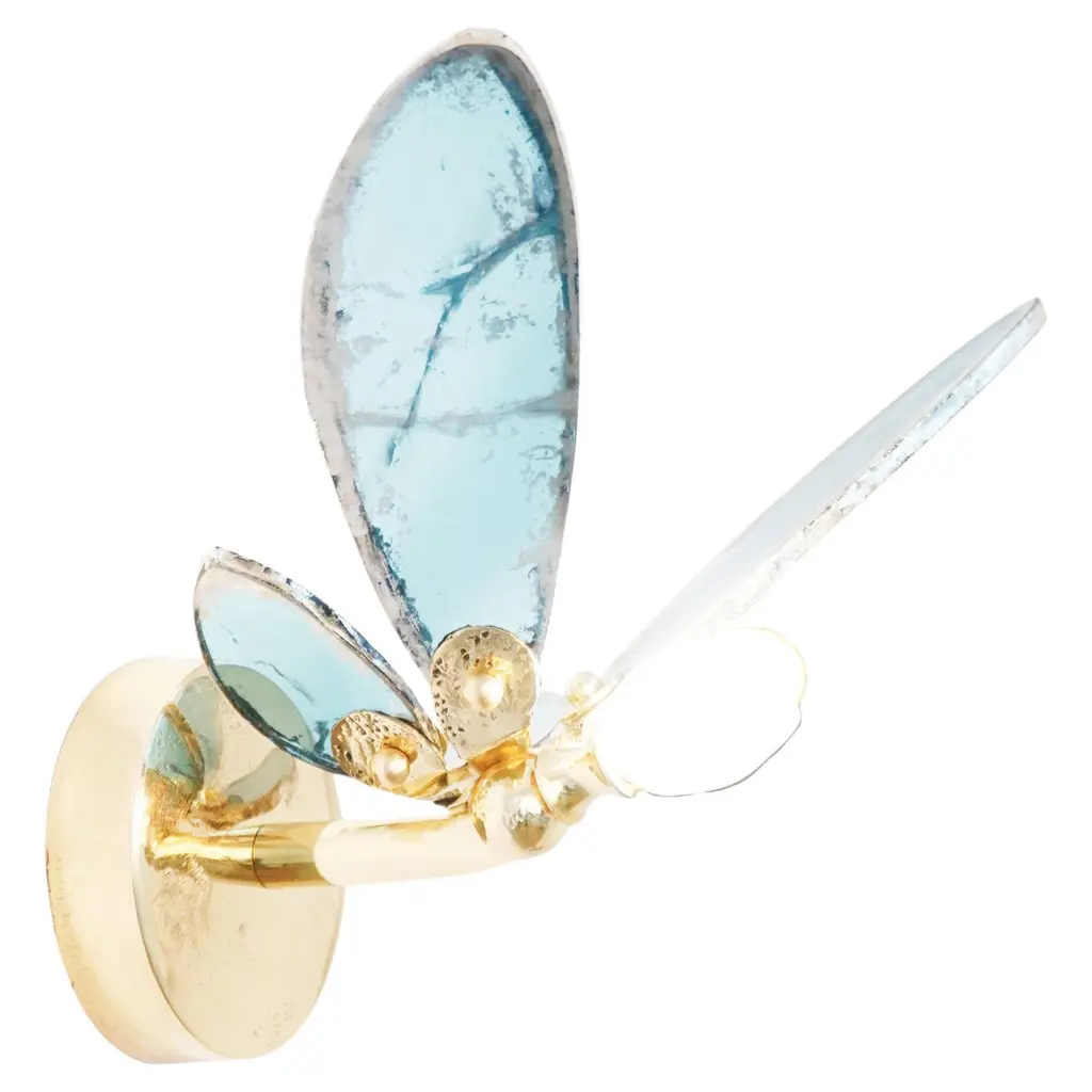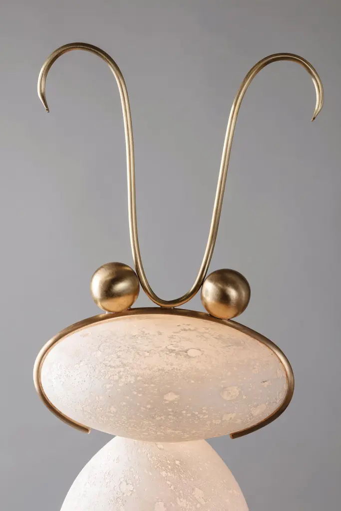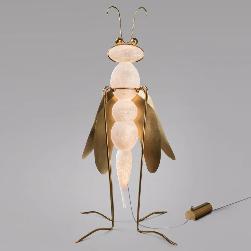 Dragonfly, floor lamp sculpture, vincent Darré and Ludovic Clément d’Armont.Material: blown glass, textile, brass.Dimensions: 120 x 75 x 43 cm.Created in cooperation with designer Vincent Darré, insects are funny and original sculptures. They come from the meeting between Vincent Darré’s dadaist world and Ludovic Clément d'Armont’ poetic world. The caterpillar is articulated and lights. It climbs your cushions and bends into your space. The spider moves around: on the floor, or against the ceiling. The dragonfly swings gently; it is alive.Vincent Darré’s work is notorious for its eccentricity, which the interior designer describes as midway between Jean Cocteau and Cecil Beaton. His designs blend baroque with surrealism, in which Darré always inserts a certain playfulness and humor. Beginning his career in fashion, working for the likes of Karl Lagerfeld at Fendi, Moschino, and Ungaro, he launched his label Maison Darré in the early 2000s from a Parisian apartment, which doubled as an office and a showroom. His first collection Ossobucco, which featured furniture made of bones and vertebrae structures, established his quirky decorative style. Today, Darré, affectionately known as the enfant terrible of Paris’s design world, counts fashion houses Schiaparelli and Christian Louboutin as clients, and he’s recently released an art book with Rizzoli to compile most vibrant design exploits.Ludovic Clément d’Armont is in the continuation of a family tradition of centuries of gentle glassmakers, painters, carpenters and artists. Both engineer and artist, he imagines new lightings combining creative emotions with optical, electronic, thermal, environmental, electrical, chemical, color, energy, mechanical and medical knowledge. His pleasure is do discuss with his clients to achieve the ideal model. Ludovic presents his approach: “First, the simplicity of my work is based on a fundamental thought: an artistic evocation of nature. My creative process marks the new identity of mathematics and nature: the selective experimentation of the nature and human research lead to the same decisions. That is why, analysis and experimentation mingle in my creation. Because the intelligence of nature is only the long time of his experiments, just like that of man is only the number of its research. The aesthetic result aims to illustrate and proclaim this, in a dreamy and amazed shout, showing the fusion of sciences and life. The place of the Man inside the Universe becomes clear. Emotions and sexes are the result by elimination aiming to perpetuate: without absolute, humanism becomes the demonstrated organization of society.”Semeur d’étoiles gathers around Ludovic Clément d’Armont artists, engineers and craftsmen to design and manufacture exceptional light creations. As decorative lighting is often disappointing, Semeur d’étoiles creates more than just lightings: we make art pieces. Semeur d’étoiles is not limited to a material or a technique: we find new ways of manufacturing blown glass, crystal, porcelain, metal. Simultaneously, we work the light in theoretical and experimental ways so that it echoes with these materials, textures and shapes. This enables us to offer new and various light effects. To put these effects in volume, Semeur d’étoiles relies on its mastery of technical complexity. Nevertheless, we hide the technical components so that only the beauty of light and materials can be seen. Semeur d’étoiles is committed to an eco-design approach with ADEME (recyclable materials, manufacturing processes, reduced packaging, transportation, reduced consumption, recycling). And as ecology is nothing without human respect, Semeur d’étoiles also takes great care of supply. A creation can result of your own inspiration: each of our pieces can be customized. We propose numerous models of LEDs (a variety of shades of white, lens shapes and light intensities), a wide range of materials, dimensions, shapes, finishes, etc. If you wish, we will create for you a unique and spectacular piece. The originality of our creations and our technical skills are evidenced by the loyalty of our customers, by our internal laboratory, by the grant of patents and models and by the obtained distinctions.