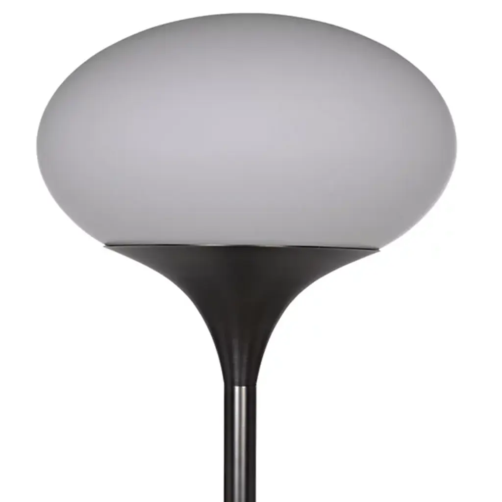 Add inspired elegance to interiors with the Drop Floor Lamp from Noir, a classic mid-century design that exudes elegance. The lamp is made from industrial steel with a smooth metallic finish; this floor lamp features a timeless tulip-shaped silhouette. The white glass spheroid shade adds a touch of sophistication, creating a perfect balance between contemporary and mid-century modern styles. The fixture is an ideal addition for those seeking a harmonious blend of classic and contemporary influences in their decor.