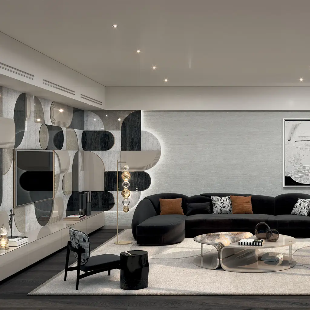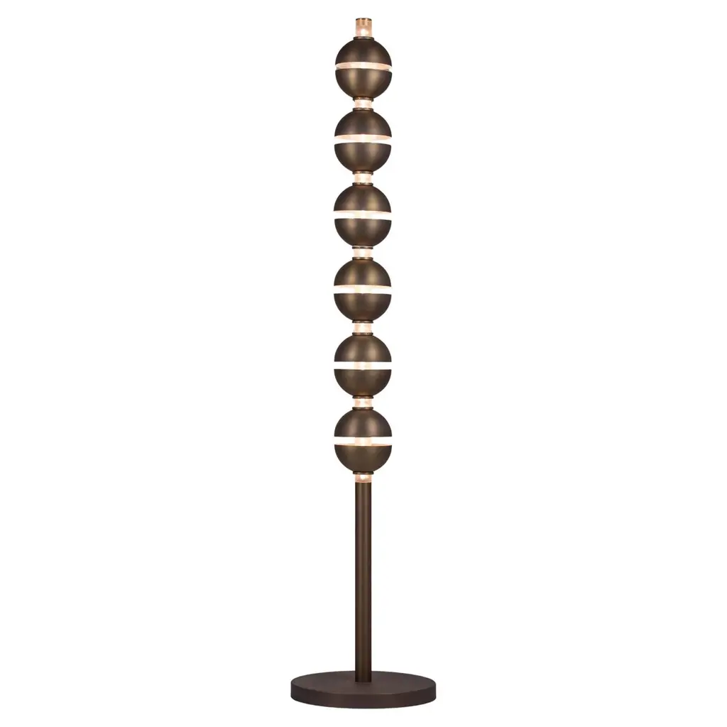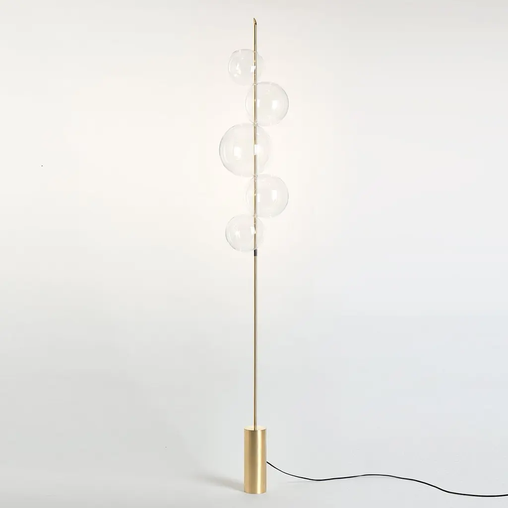 Outstandingly decorative in its jewel-like design, this floor lamp is ideal for accenting interiors with a dash of femininity. The essential, asymmetrical metal structure boasts a glistening chromed finish that matches the metal details decorating the pendant multicolor and multi-texture composition of spherical glass shades descending from the single horizontal arm. A different color version is available in the Artemest catalog.