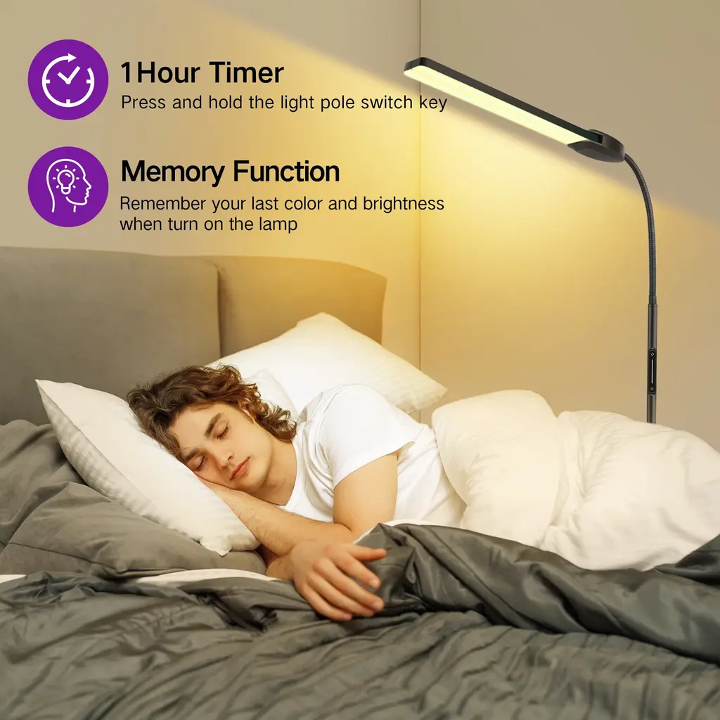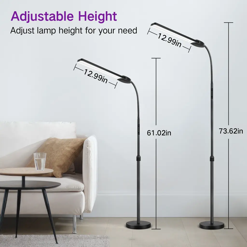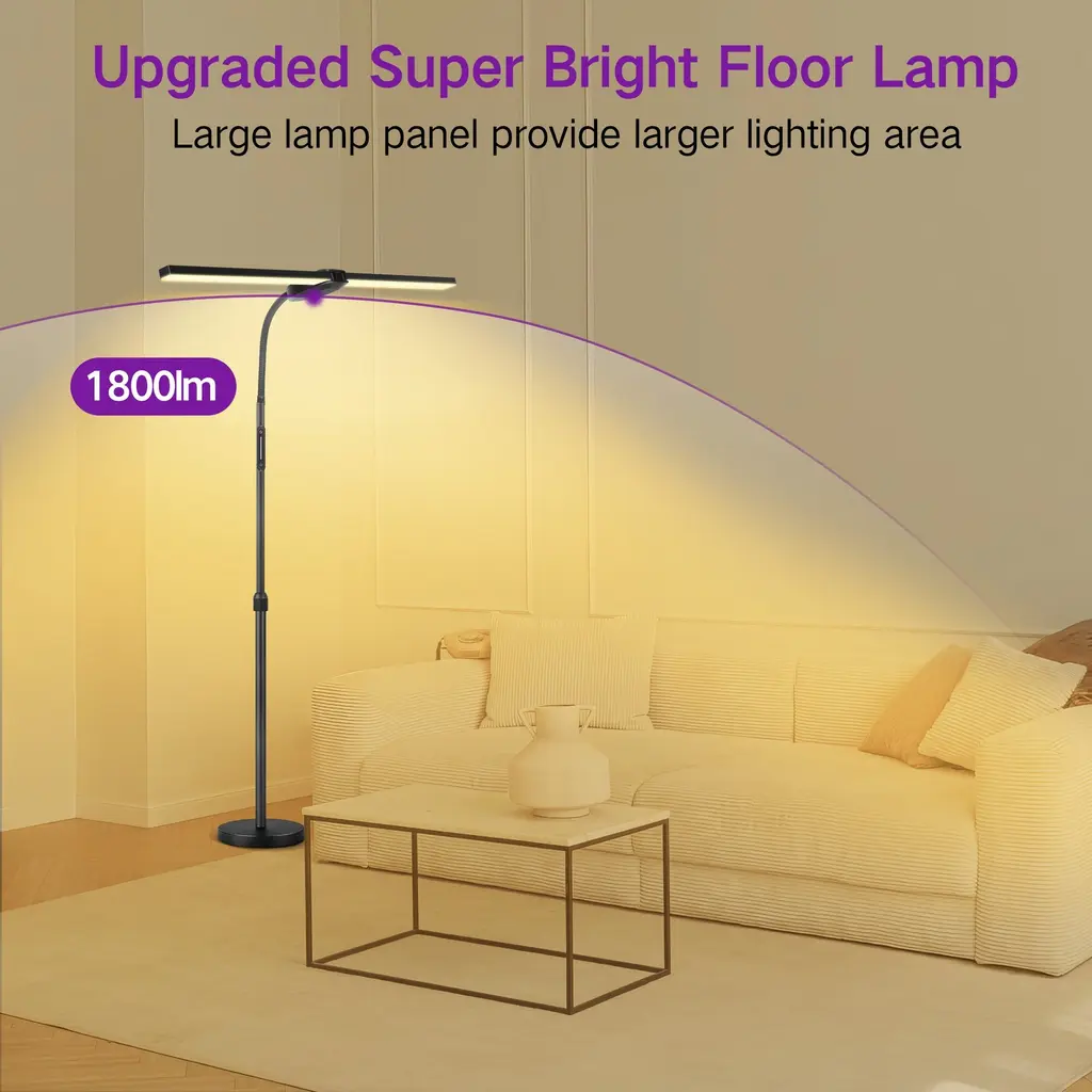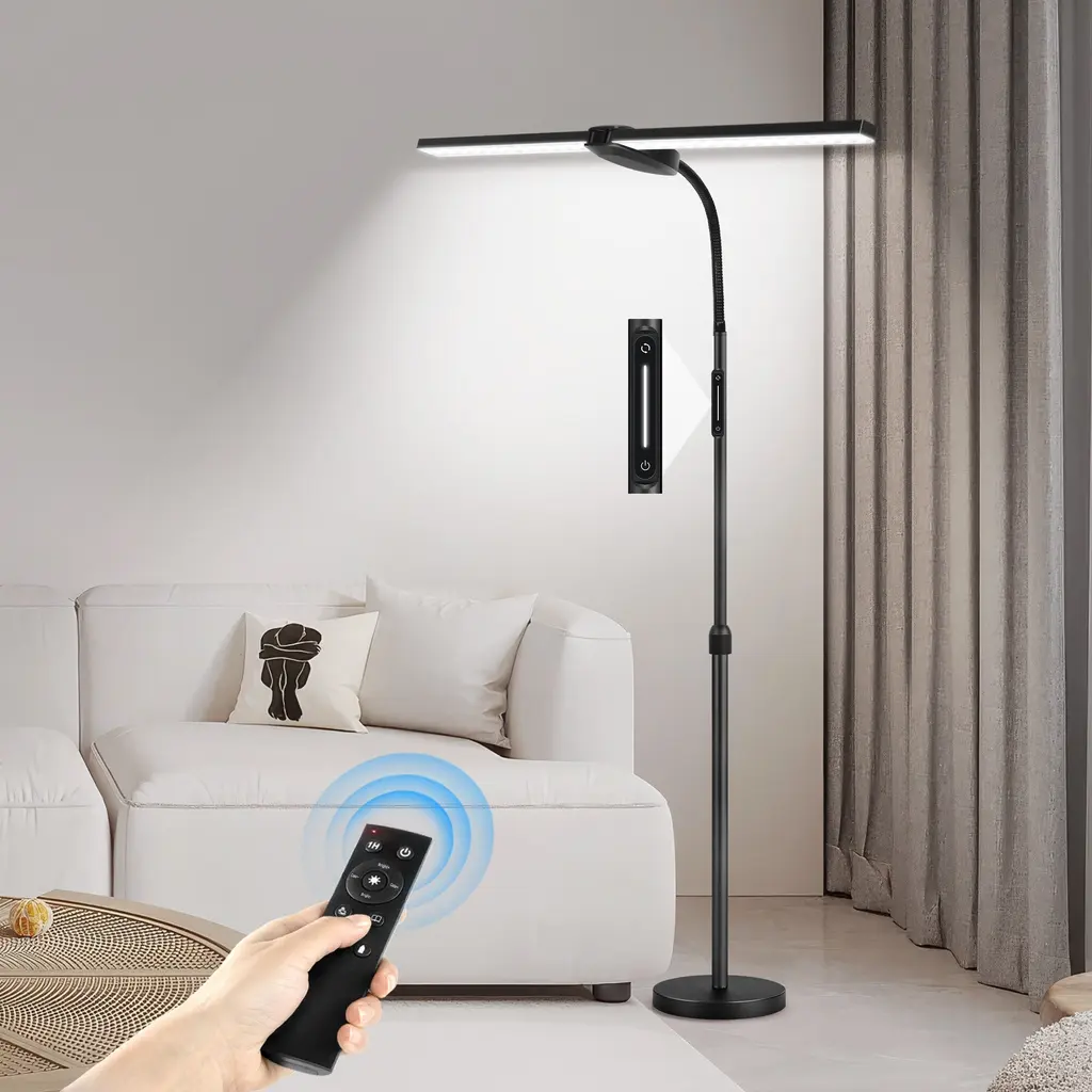Enhance your living space with our 68.5" dual-head sofa lamp, featuring remote and touch slider controls. Choose from four specific color temperatures (2700K, 4000K, 5000K, 6500K) ranging from warm to cool light, and enjoy adjustable brightness for customized lighting. With adjustable height and a weighted base for stability, this lamp also includes a power-off memory function for added convenience. Feature :