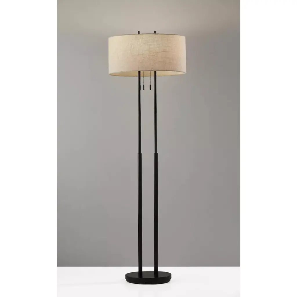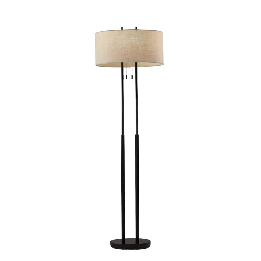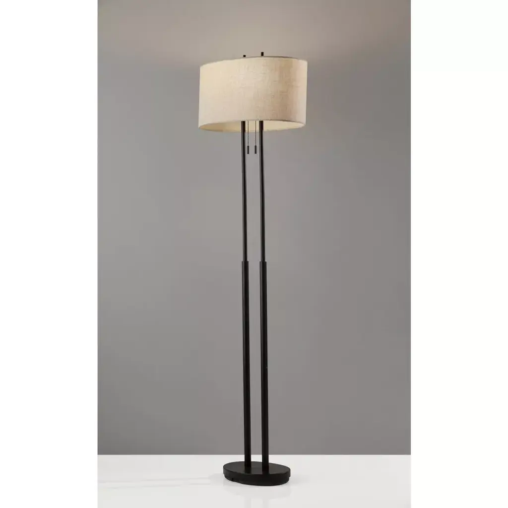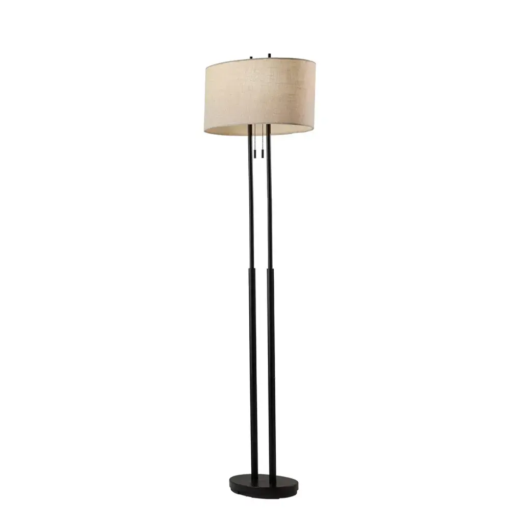 Duet Floor Lamp Antique Bronze - Adesso: Modern Pull Chain, Etl Listed, Polyester Shade, Metal Body