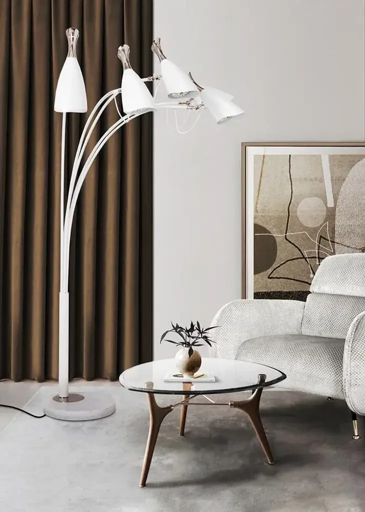 Duke Ellington has been an inspiration around the world to many artists and musicians. Therefore, DelightFULL’s designers have decided to pay a tribute to this iconic jazz musician and create Duke floor lamp. With a short silhouette and a single swing, Duke floor lamp is a retro-styled accessory for every single mid-century modern interior design. Each cone lamp shade is conducted by a brass arm and its counter-weight. European Plug (up to 250V).