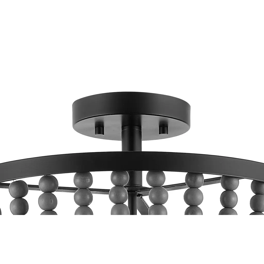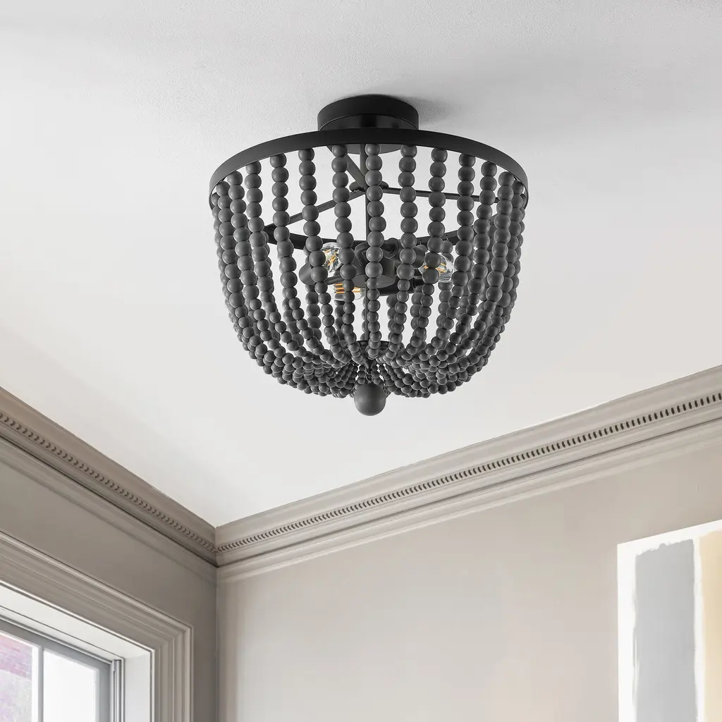 Dune Wood Bead 16" 3-Light Bohemian Farmhouse Iron Led Semi Flush Mount, Oil Rubbed Bronze/grey By Jonathan Y - Gray