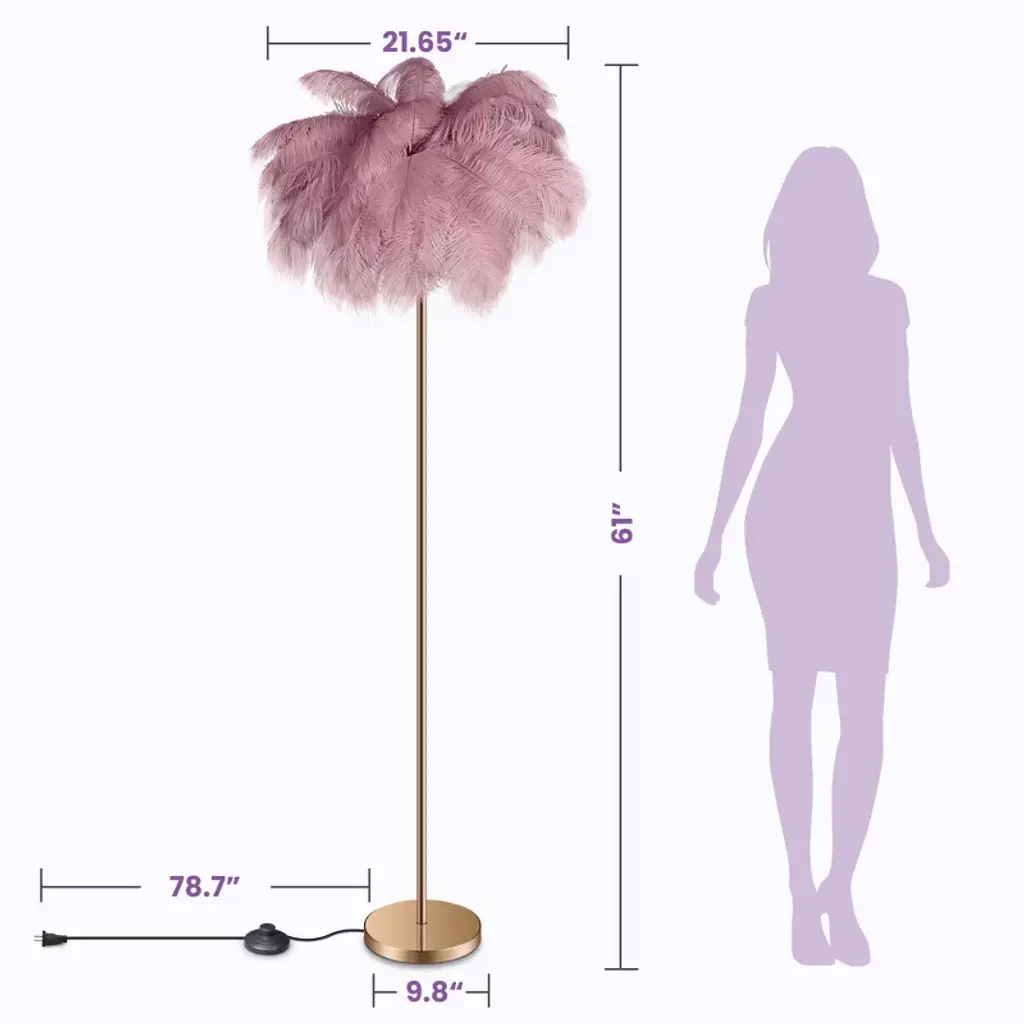 Transform your space with the EasyinBeauty Natural Ostrich Feather Floor Lamp. This lamp combines modern style with natural elegance, perfect for creating a cozy, romantic ambiance in your bedroom or living room. Its unique design adds sophistication to any room.