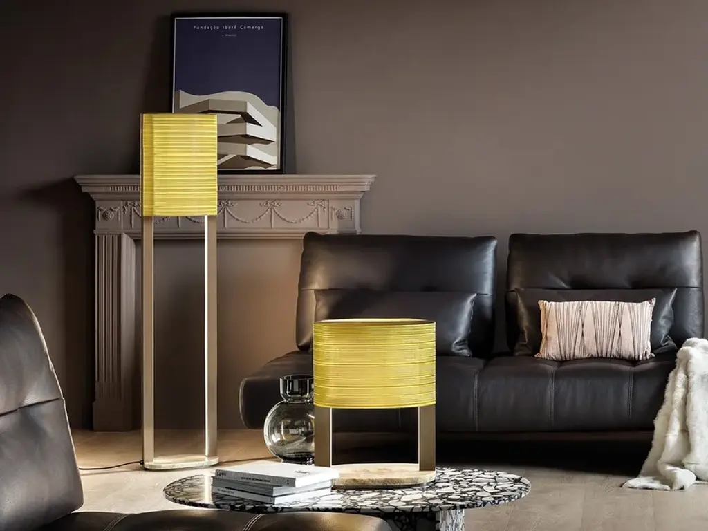Ebe STL is a floor lamp with metal frame painted in dark chocolate, shade made of brass wire mesh, base made of natural onyx. LED source.Technical features35 W CRI>953000 K – 3770 NOMINAL LM2700 K - 3580 NOMINAL LMDIMM OWN BUTTONCE LEDETL LEDCCC LEDCB SCHEME LEDInspired by the myth of Hebe, goddess of youth and symbol of freshness and contemporaneity, Nicola Gallizia's collection of lamps for Masiero represents the synthesis between light and sinuous shapes and the selection of noble materials. In classical iconography, the goddess Hebe is represented with harmonious shapes, recalling the soft plasticity of a sculpture, such as those made by Canova. The result is a collection of jewel lamps in which metal and precious stones interact with brass wire to create luminous geometries of an austere, timeless beauty. From the weave of the rich brass wire mesh lampshades, light filters delicately and illuminates rooms with softness and magic. The base in natural Onyx, an ancient and precious stone used in antiquity to make jewels, makes the lamps ethereal. The special effect of the transparency combined with the unique reflections of the stone recall the reflections of moonlight.