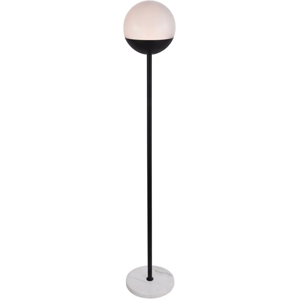 Refined style with a practical design, Eclipse Floor Lamp bring cosmopolitan sophistication anywhere, especially to an entryway, office, bathroom, bedroom, or kitchen. The smooth marble base anchors the floor lamp and comes in a black finish. A touch of color on top of the frosted white spherical glass shade brings character to this classic style. Living in the big city has never been this easy.