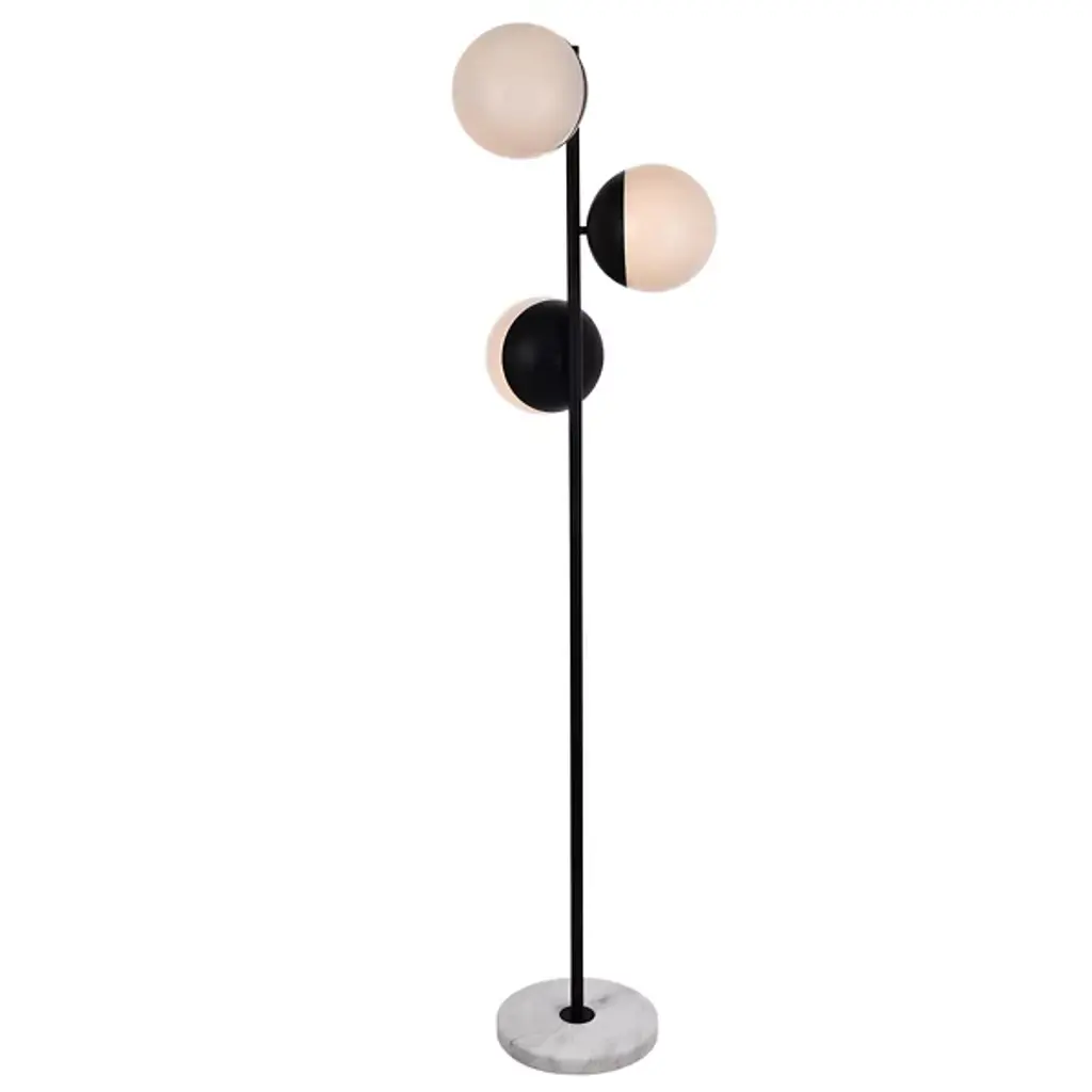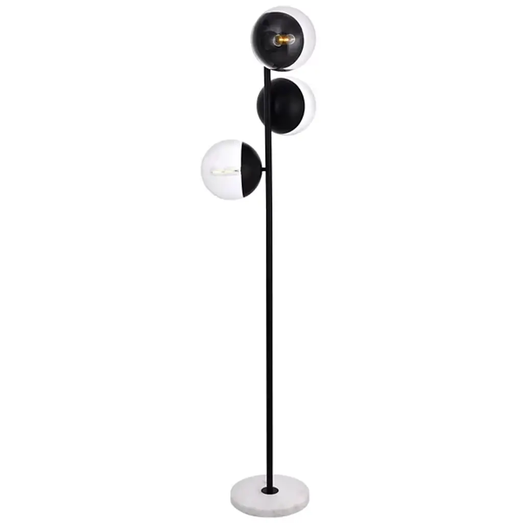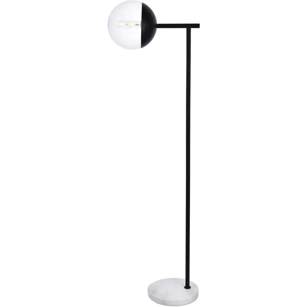 Refined style with a practical design, Eclipse Floor Lamp bring cosmopolitan sophistication anywhere, especially to an entryway, office, bathroom, bedroom, or kitchen. The smooth marble base anchors the floor lamp and comes in a black finish. A touch of color on top of the frosted white spherical glass shade brings character to this classic style. Living in the big city has never been this easy.