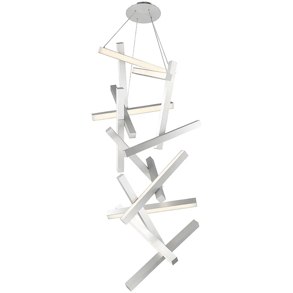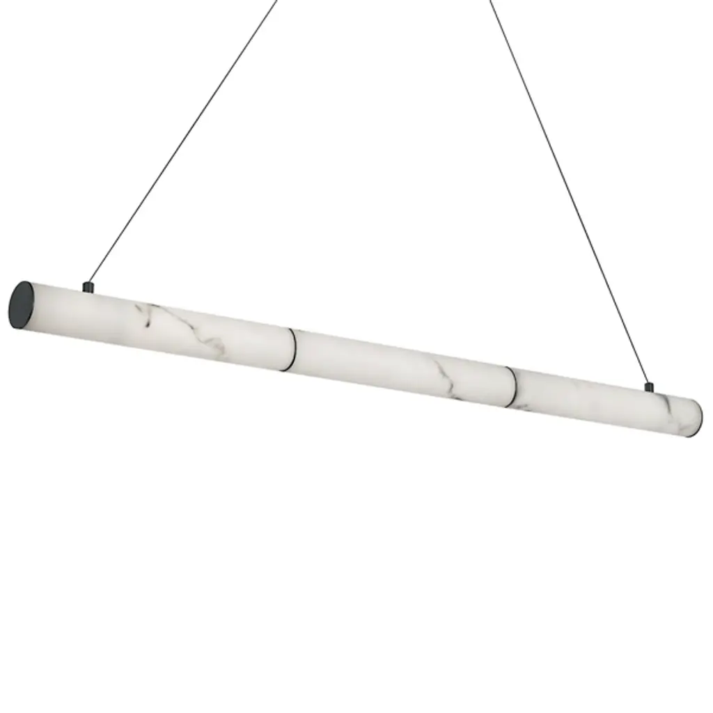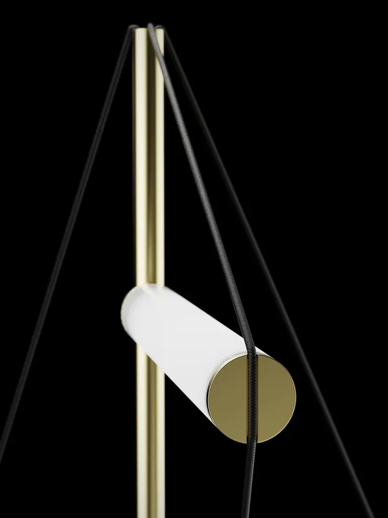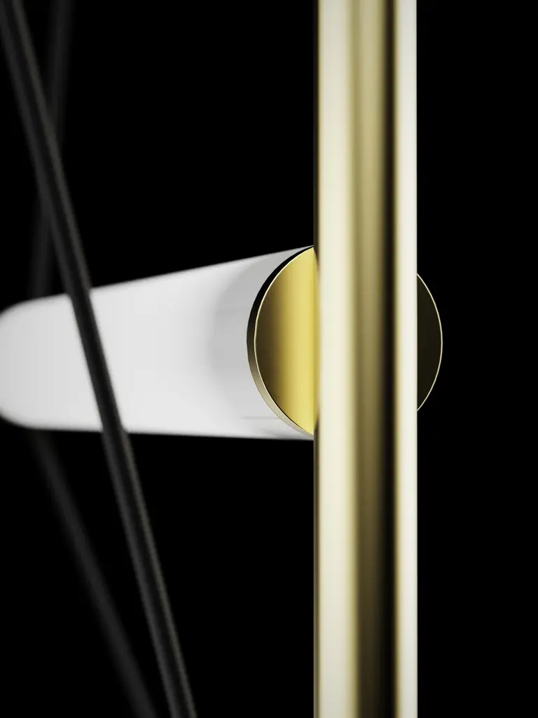 Floor lamp with Carrara white stone base, chrome structure and frosted light tubes.
