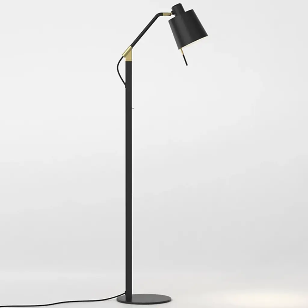 The Edward Floor Lamp from Astro Lighting carries a smooth contemporary sensibility with a touch of vintage refinement. Designed with a focus on adaptable lighting, its matte black steel frame is accented with gold electroplating for a subtle contrast. Built with Astro's QuickBase system, the lamp assembles quickly, its sturdy form suiting lounges, lobbies, or living rooms. A simple switch provides positive control, while the integrated LED inside the cylindrical head delivers efficient, long-lasting illumination. ADA-compliant and adjustable, the lamp pairs practical engineering with rich, brighter detailing, adding luxury to a design strong enough for reliable everyday use.