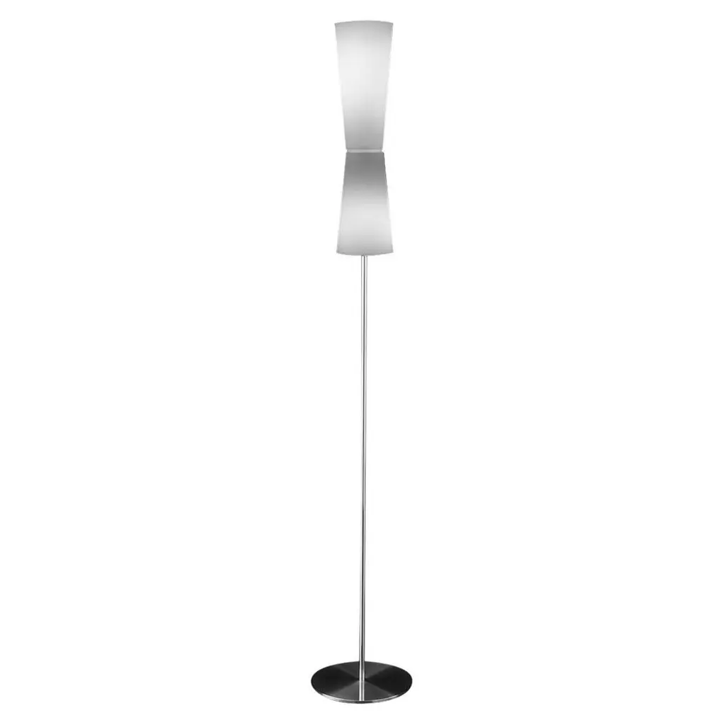 The unexpected shape of the Egg Floor Lamp gives excellent dimension to your modern living space. Place this impressive lighting solution in a spot where it can be admired and cast a pleasant glow in your space with the cut-out vinyl lantern topping the stainless steel base.