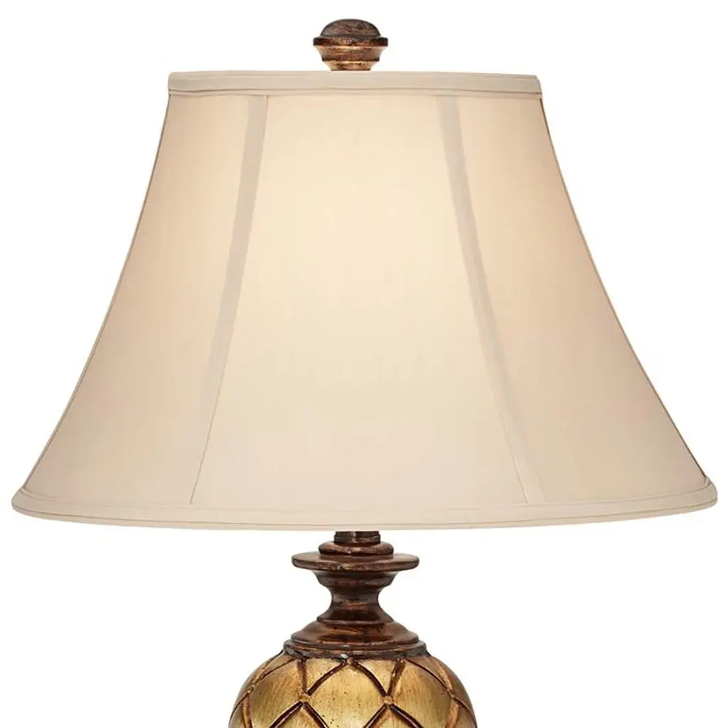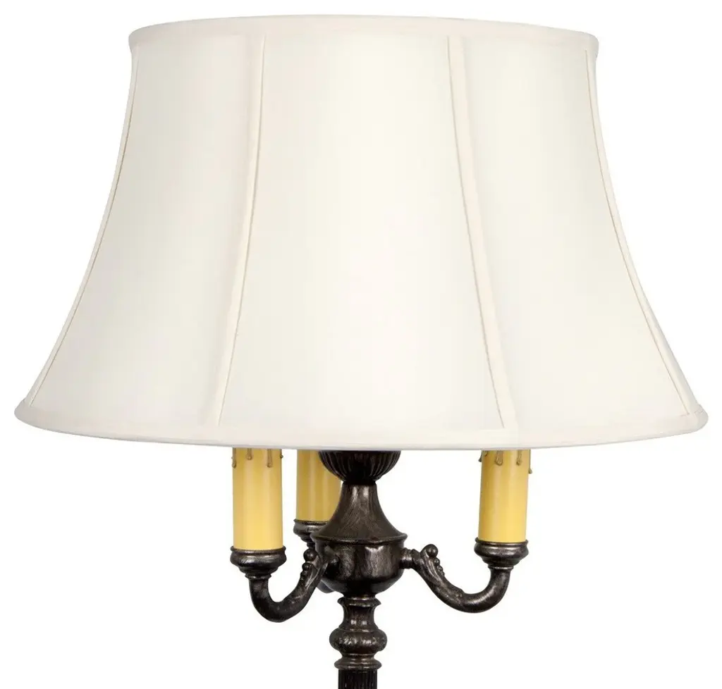 Upgradelights White Eggshell Silk 19 Inch Barrel Drum Floor Lampshade Replacement Shade Dimensions: 14 inch top diameter, 19 inch bottom diameter, 10.75 inch height Finest quality fabric with reinforced trim on top and bottom Shade available in both linen and silk fabric Shade available in both beige/brown and white linen as well as black, eggshell, and tan/copper silk Easily replace any floor lampshade with brass washer fitter included